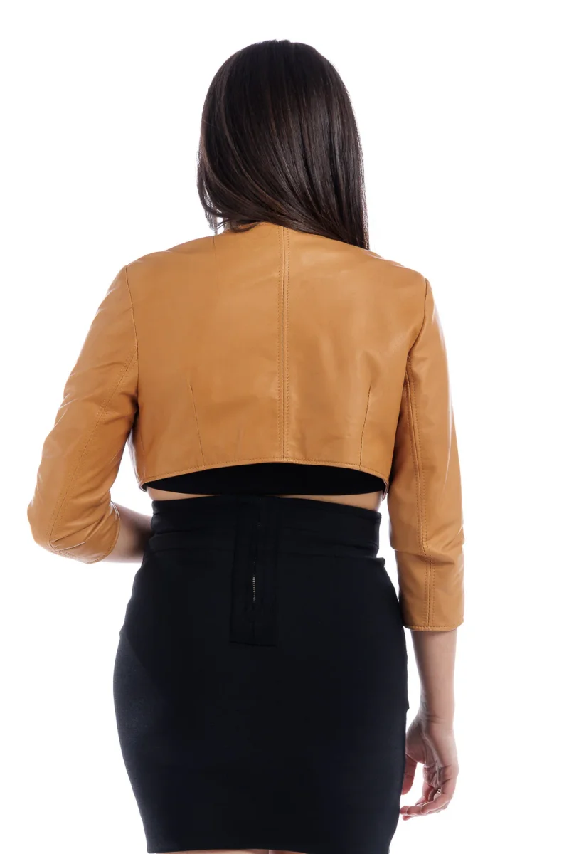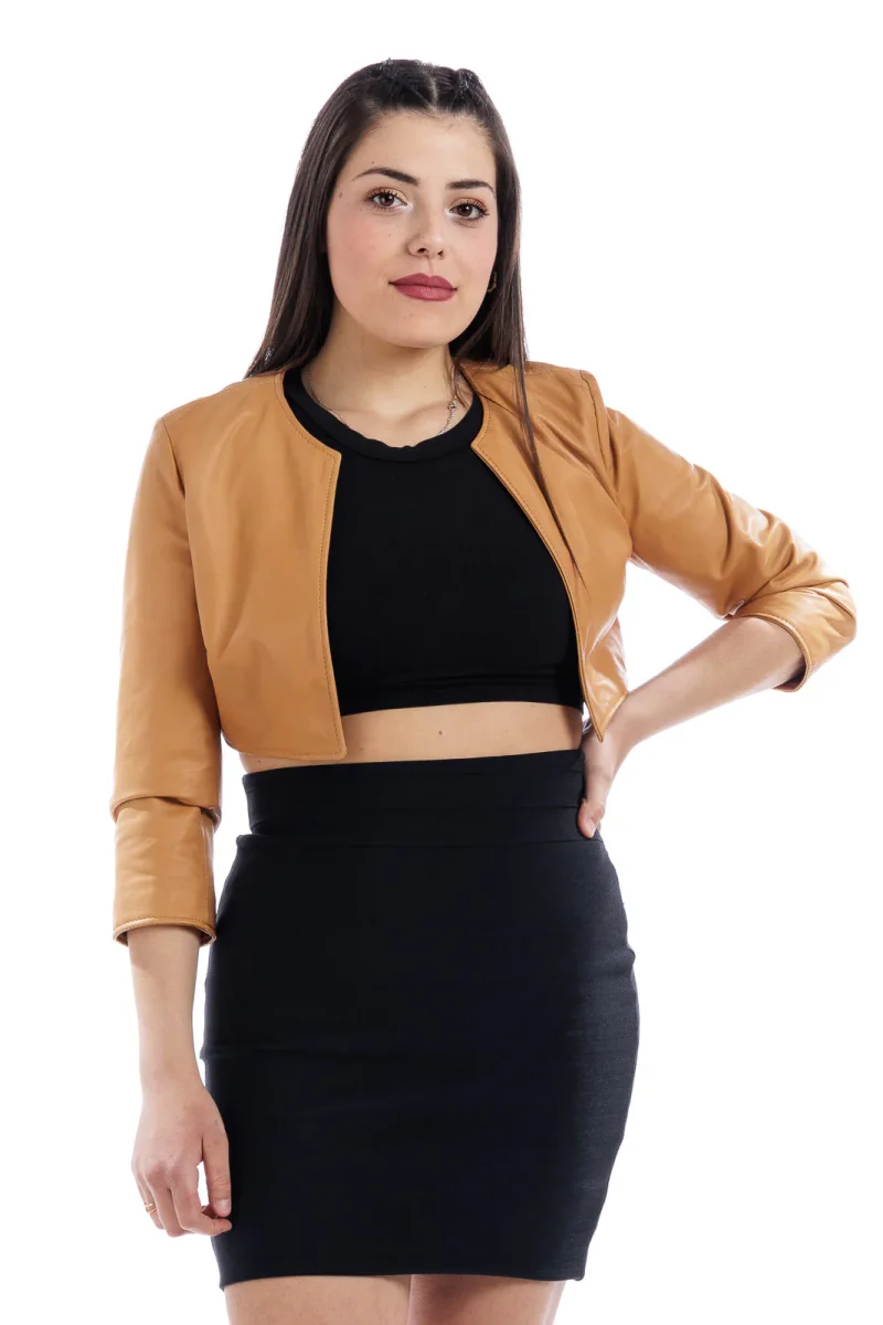 Corpetto in pelle donna con manica a tre quarti cuio