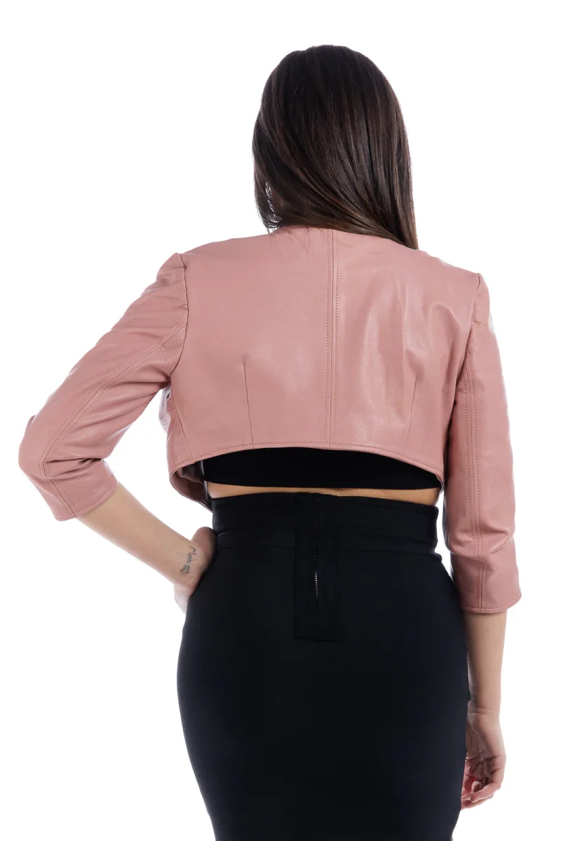 Giacca in Pelle Vera – Modello: Corpetto con manica a trequarti rosa 100% Made in Italy