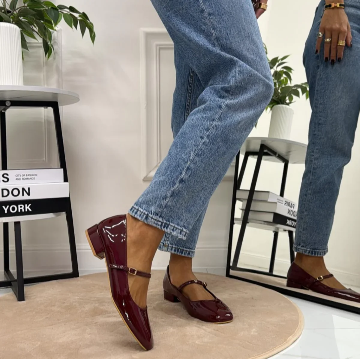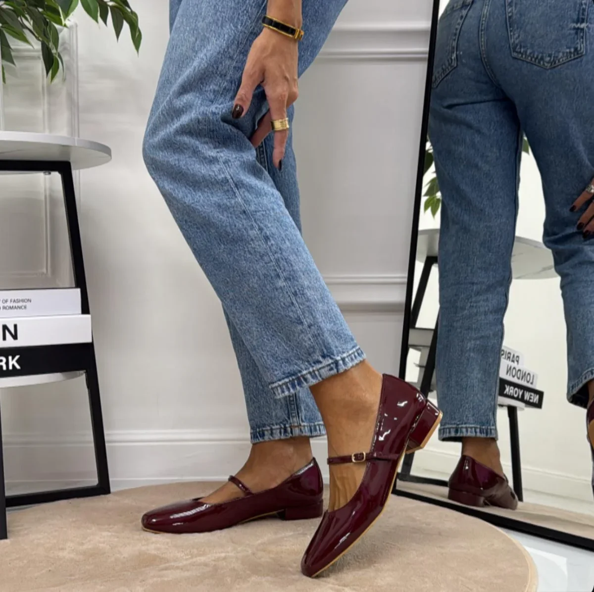Cristina – Scarpe Donna Ballerine Cinturino Comode Lucido Bordeaux