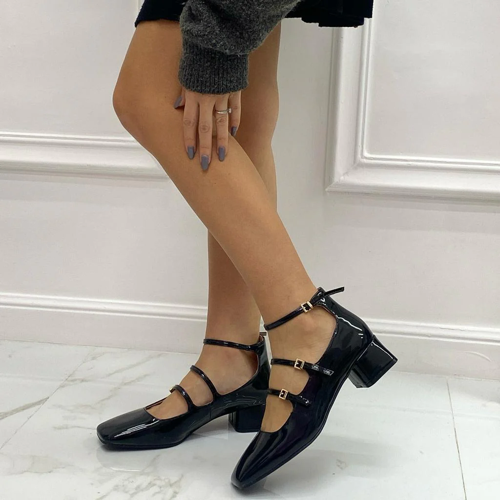 Delia – Décolleté Donna Punta Tacco Basso Quadrato Lucido Nero
