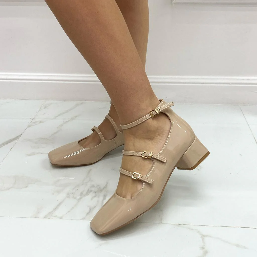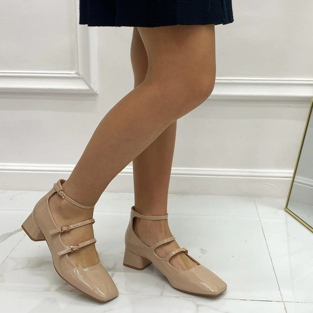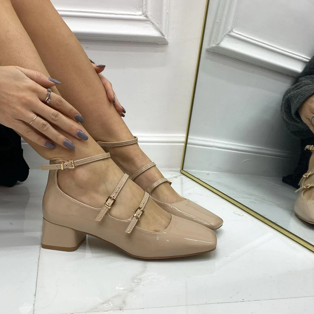 Delia – Décolleté Donna Punta Tacco Basso Quadrato Lucido Nude