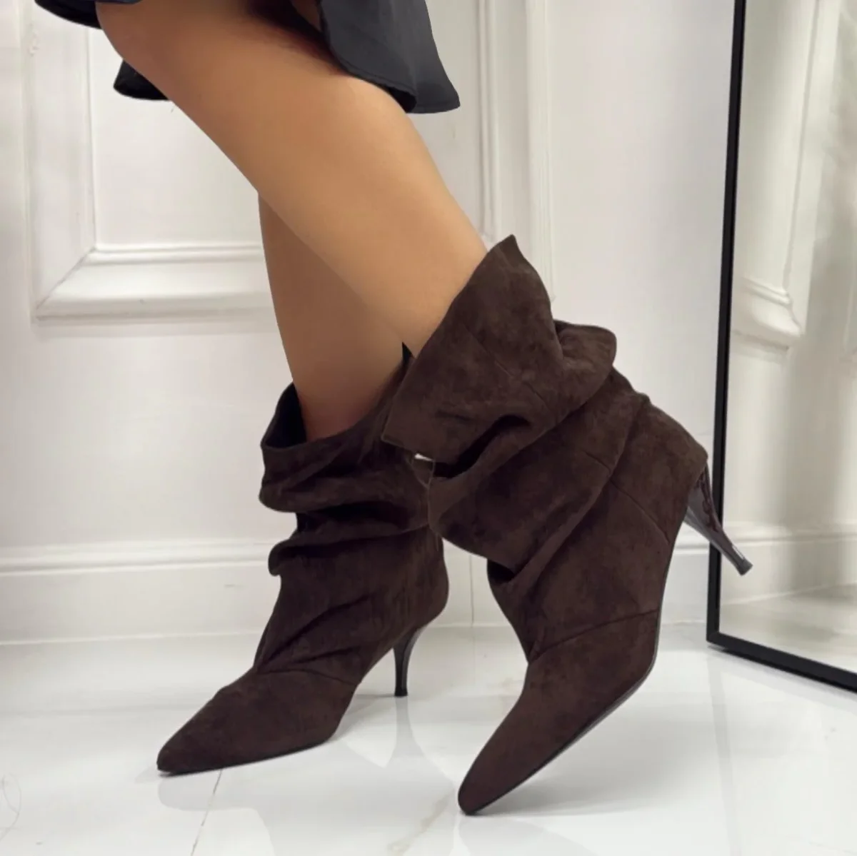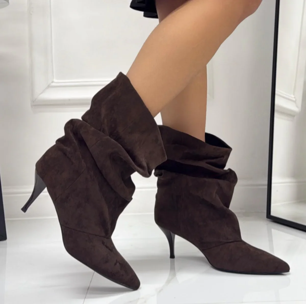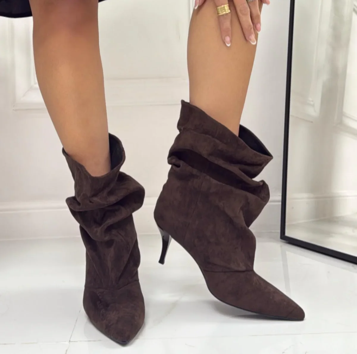 Stivaletti eleganti dal design femminile, caratterizzati da una silhouette affusolata che slancia la figura. La punta sottile e il tacco di 8 cm donano un effetto raffinato e deciso, ideale per valorizzare ogni look. Il gambale morbido crea un elegante effetto arricciato che avvolge la gamba, aggiungendo stile e personalitร . Pensati per unire comfort e stabilitร , sono perfetti da indossare sia di giorno che di sera, abbinati ad abiti, gonne o pantaloni per un outfit curato e contemporaneo. Hanno una calzatura regolare.