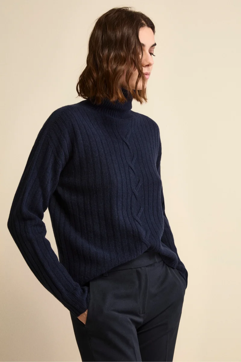 Dolcevita in Lana e Cashmere con Treccia – BLU