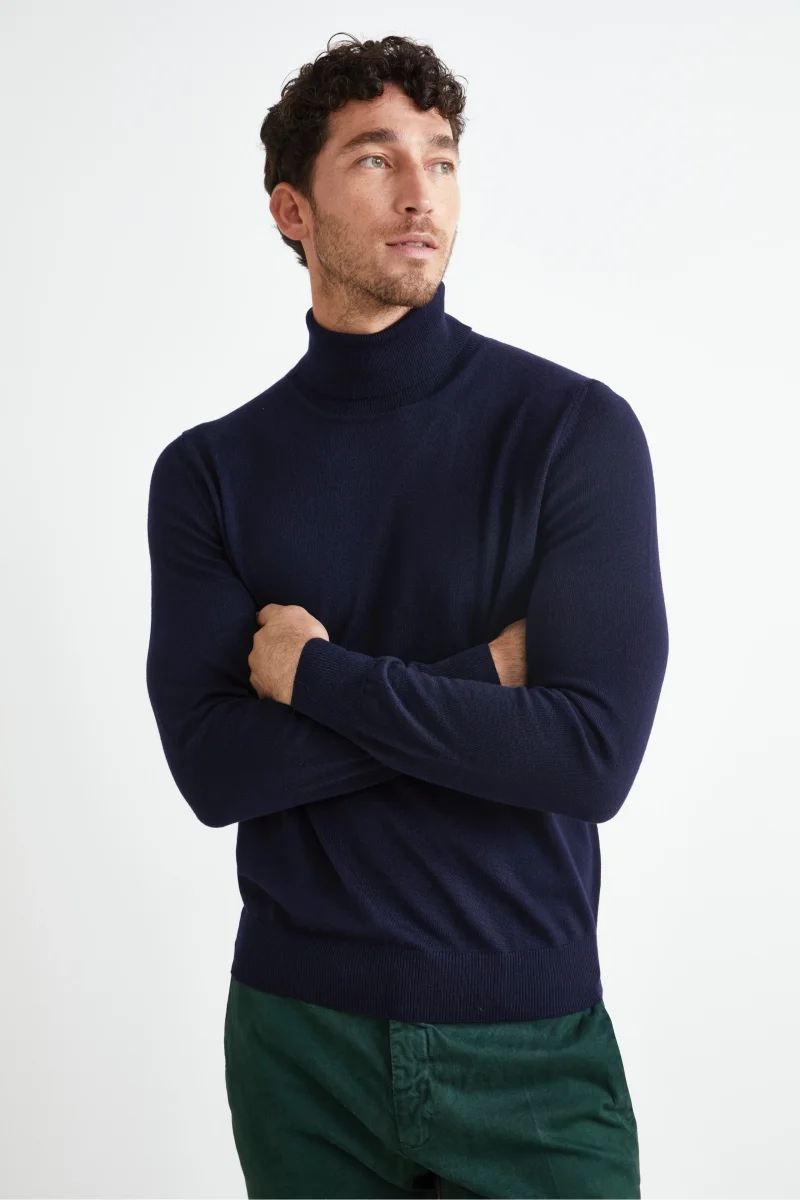 Dolcevita in lana merino da uomo, un capo essenziale e raffinato, perfetto per chi desidera un look sofisticato e senza tempo. Realizzato interamente in Italia, rappresenta lโeccellenza del Made in Italy, con una cura impeccabile per i dettagli e una qualitร superiore. La maglia รจ confezionata con la prestigiosa lana merinos extrafine Harmony del Lanificio di Tolllegno, un tessuto che garantisce non solo resistenza e lucentezza, ma anche traspirabilitร e leggerezza, per un comfort ottimale in ogni situazione. Disponibile in diverse colorazioni, il dolcevita si adatta a qualsiasi occasione: abbinato a un denim per un look casual o sotto un completo per un outfit elegante. Un capo versatile che non puรฒ mancare nel guardaroba di chi cerca stile e funzionalitร . Il modello รจ alto 189 cm e indossa la taglia 50. Scegli il meglio con un dolcevita in lana merino che esprime eleganza e classe in ogni contesto.