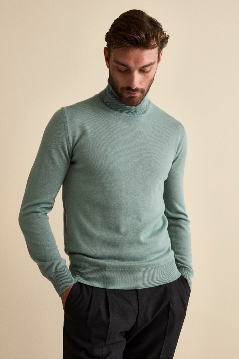 Dolcevita in lana merino da uomo, un capo essenziale e raffinato, perfetto per chi desidera un look sofisticato e senza tempo. Realizzato interamente in Italia, rappresenta lโeccellenza del Made in Italy, con una cura impeccabile per i dettagli e una qualitร superiore. La maglia รจ confezionata con la prestigiosa lana merinos extrafine Harmony del Lanificio di Tollegno, un tessuto che garantisce non solo resistenza e lucentezza, ma anche traspirabilitร e leggerezza, per un comfort ottimale in ogni situazione. Disponibile in diverse colorazioni, il dolcevita si adatta a qualsiasi occasione: abbinato a un denim per un look casual o sotto un completo per un outfit elegante. Un capo versatile che non puรฒ mancare nel guardaroba di chi cerca stile e funzionalitร . Il modello รจ alto 189 cm e indossa la taglia 50. Scegli il meglio con un dolcevita in lana merino che esprime eleganza e classe in ogni contesto.