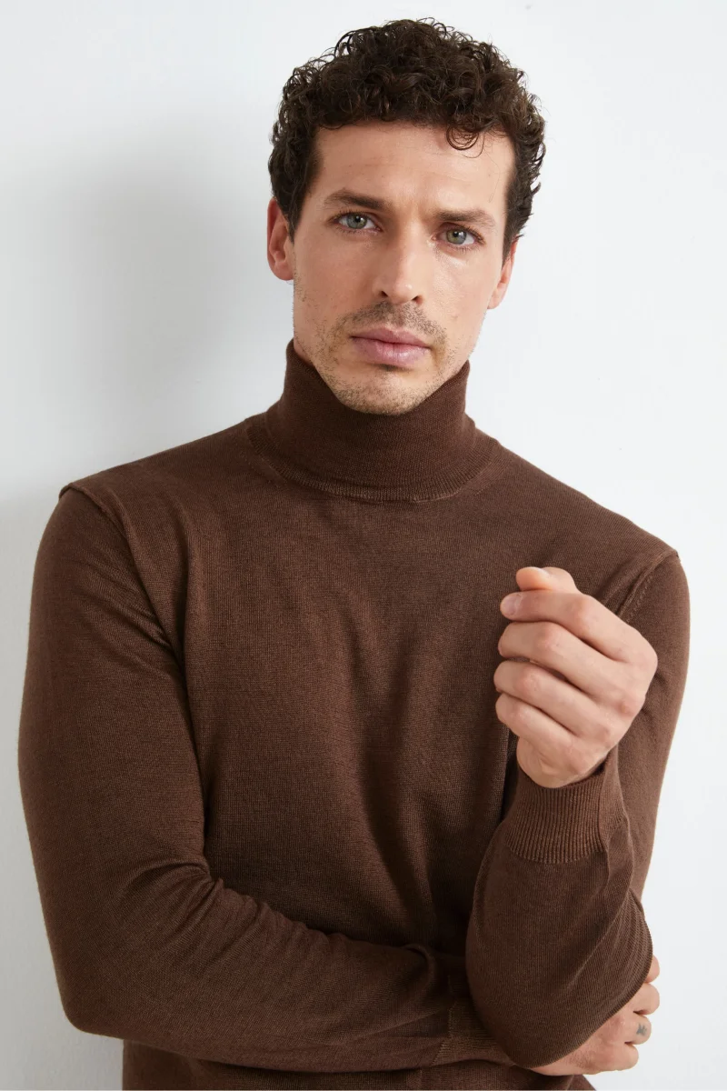 Eleva il tuo stile con il nostro dolcevita da uomo, un capo indispensabile realizzato in 100% lana Merino. Con una finezza di maglia 14, questo capo offre una vestibilitร regolare e una trama delicata, ideale per un comfort superiore. Disponibile in una vasta gamma di colorazioni, si adatta a qualsiasi look, rendendolo un vero jolly per ogni guardaroba. Caratterizzato da cuciture della manica al rovescio, aggiunge un tocco unico e sofisticato al design classico. La lana Merino assicura calore, traspirabilitร e morbidezza, rendendo questo dolcevita perfetto per tutte le stagioni. Aggiungi un elemento di eleganza raffinata e funzionale al tuo abbigliamento quotidiano. Il modello รจ alto 189 cm e indossa la taglia 50.