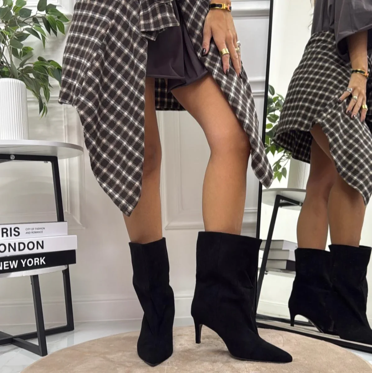 Questo stivaletti, รจ un accessorio davvero unico ed inimitabile nelle sue caratteristiche. Indossato si posa perfettamente sul piede e la gamba della donna che l’utilizza, regalandole comoditร  e personalitร , due caratteristiche che ogni donna ricerca in un accessorio. Le sue peculiaritร  sono: la punta, il tacco alto circa 5 cm, il tessuto eco camoscio e hanno calzata regolare. Possono essere accostati capi come: gonne, shorts, vestitini ed ecc. Hanno una calzata regolare.