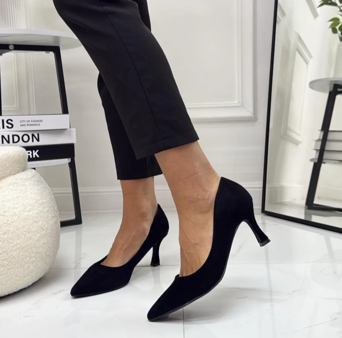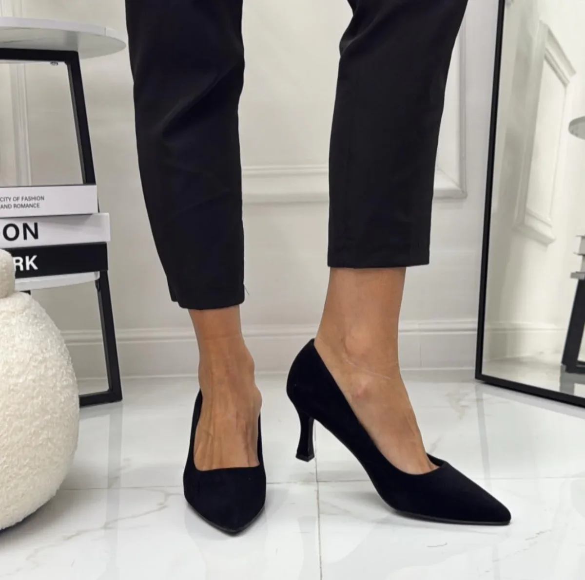 Décolleté dal design affusolato, caratterizzate da una punta slanciata e un tacco sottile che valorizza la silhouette della gamba. La tomaia liscia conferisce un aspetto pulito e raffinato, mentre la struttura stabile del tacco rende la calzatura ideale sia per look formali sia per outfit serali più ricercati. Un modello essenziale e sofisticato, perfetto per completare qualsiasi stile. Ha una calzatura regolare.