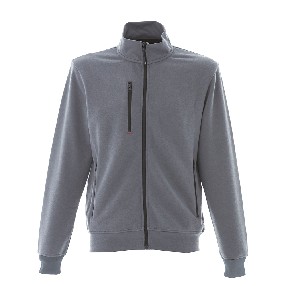 Collo a lupetto con nastro di rinforzo interno Cerniere nastrate Zip lunga Una tasca con zip sul petto, due tasche con zip Cucitura in contrasto ai bordi delle tasche Cuciture ribattute Tessuto: 60% cotone 40% poliestere | 280 gr/mq