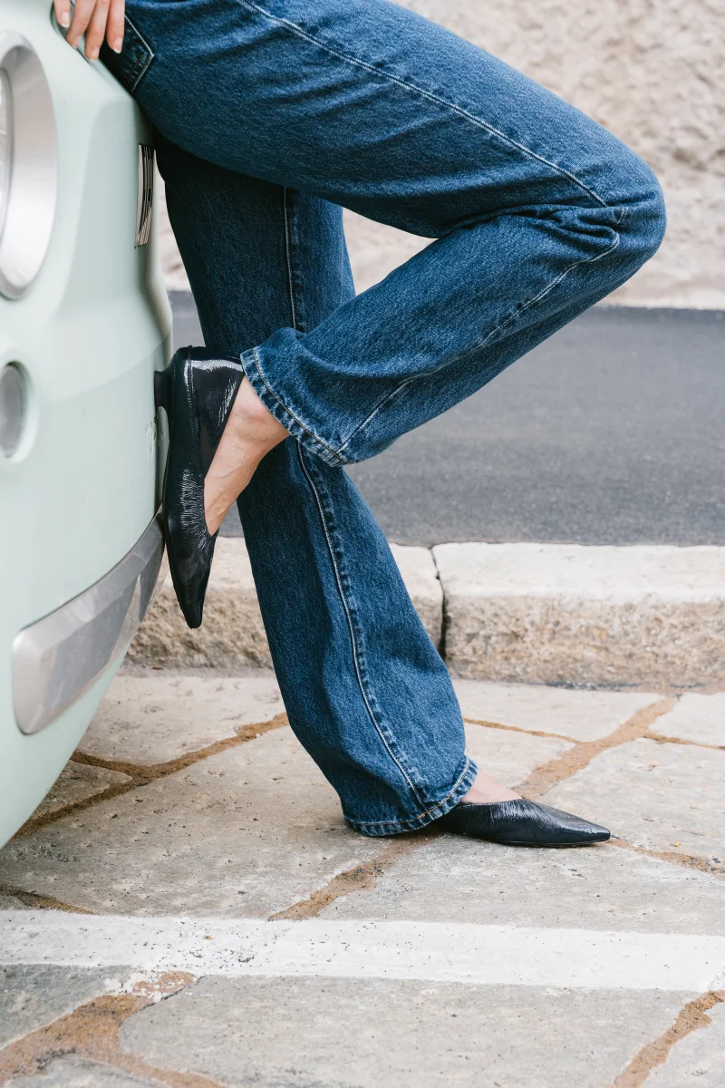 Tomaia pelle. Forma a punta. Tacco dipinto (altezza 10 mm). Suola gomma
