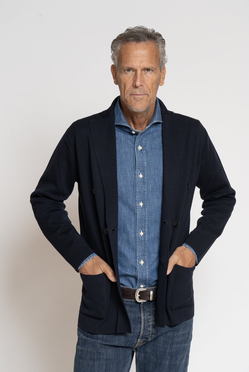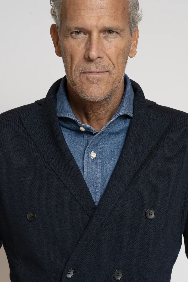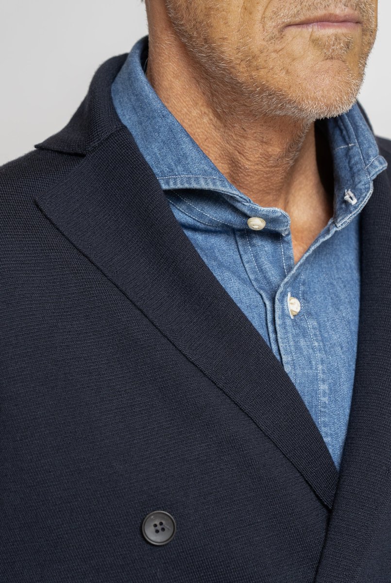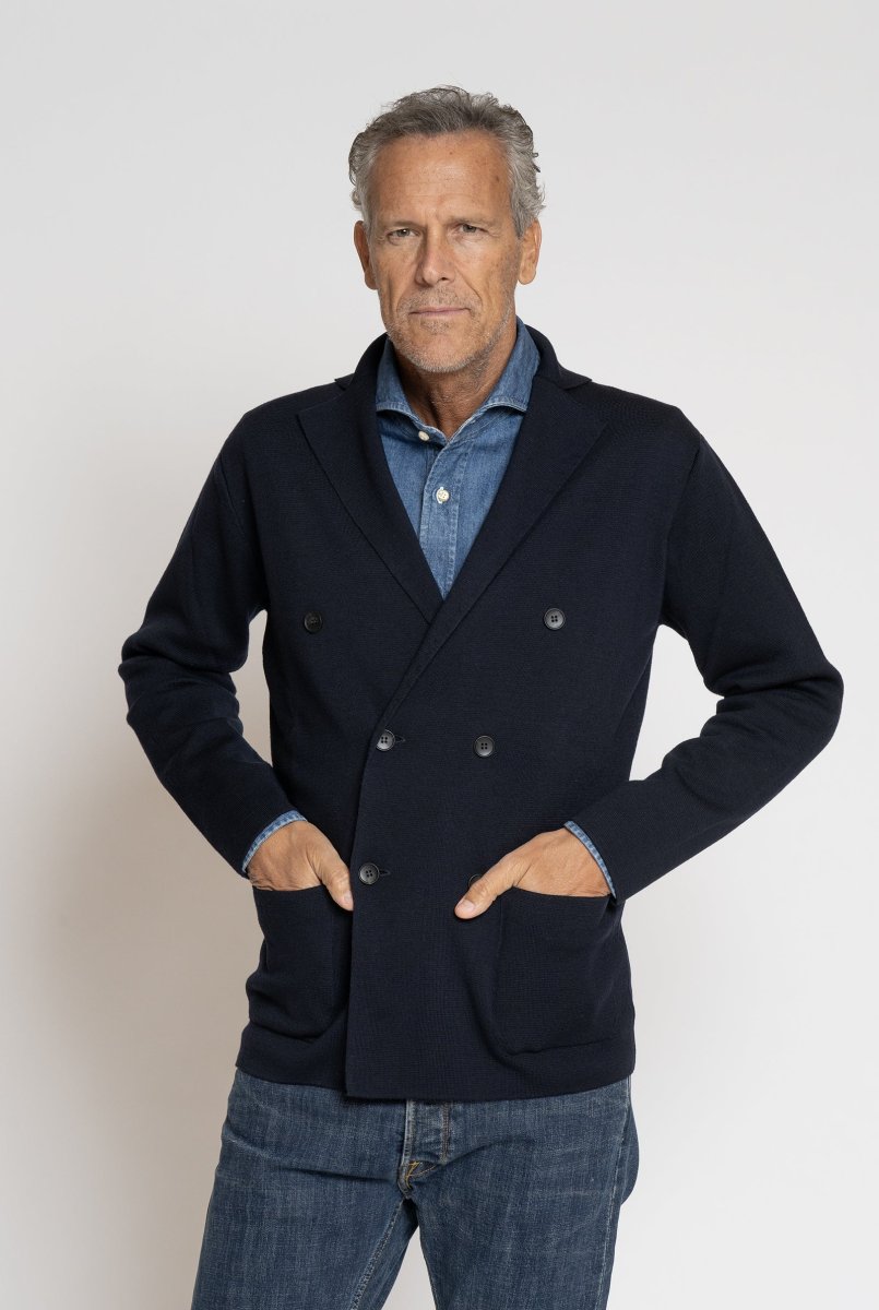 Giacca a Maglia in Lana Merino Doppiopetto Blu
