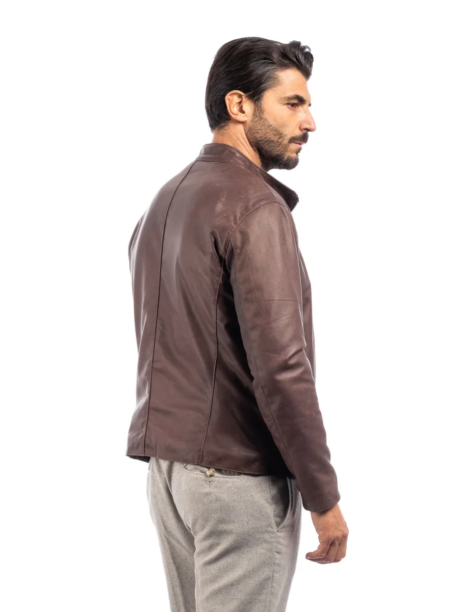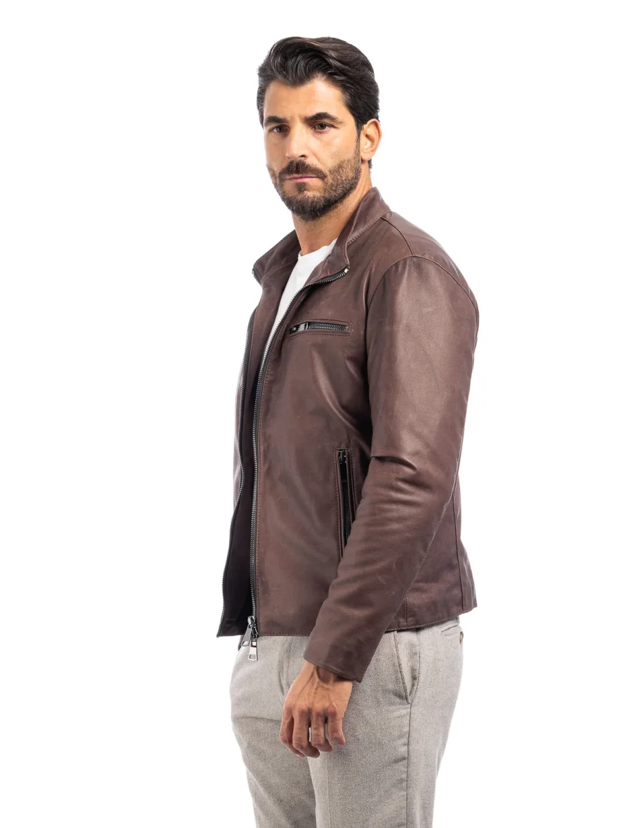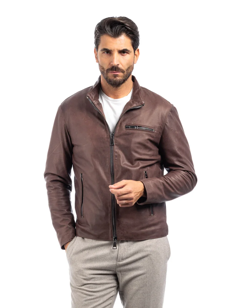 Giacca in Pelle Vera – Modello: Biker adv in pelle marrone 100% Made in Italy