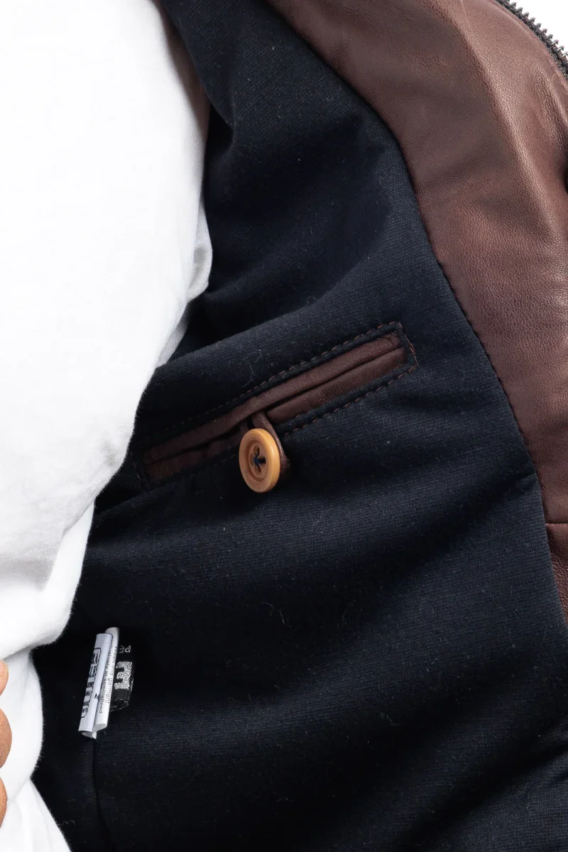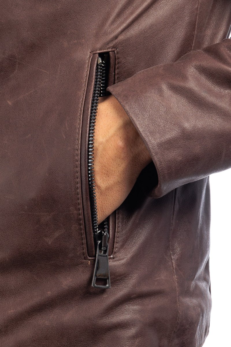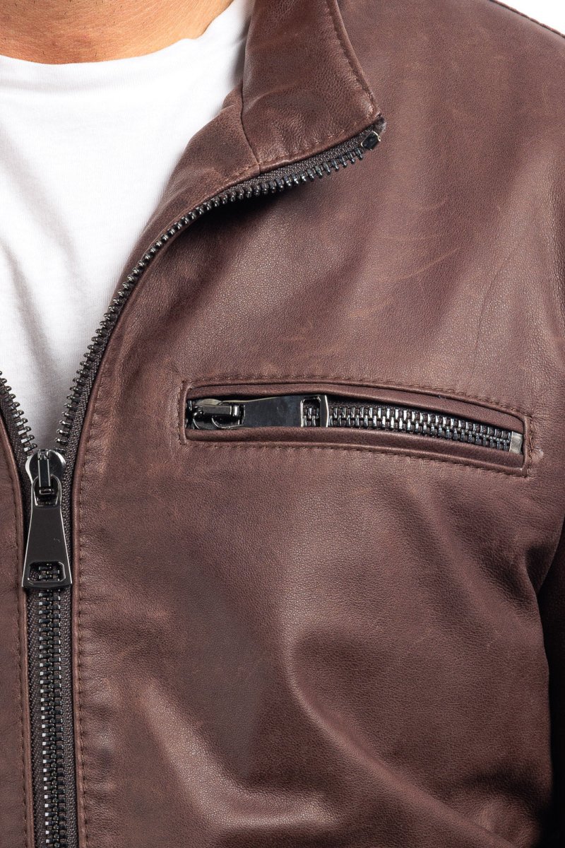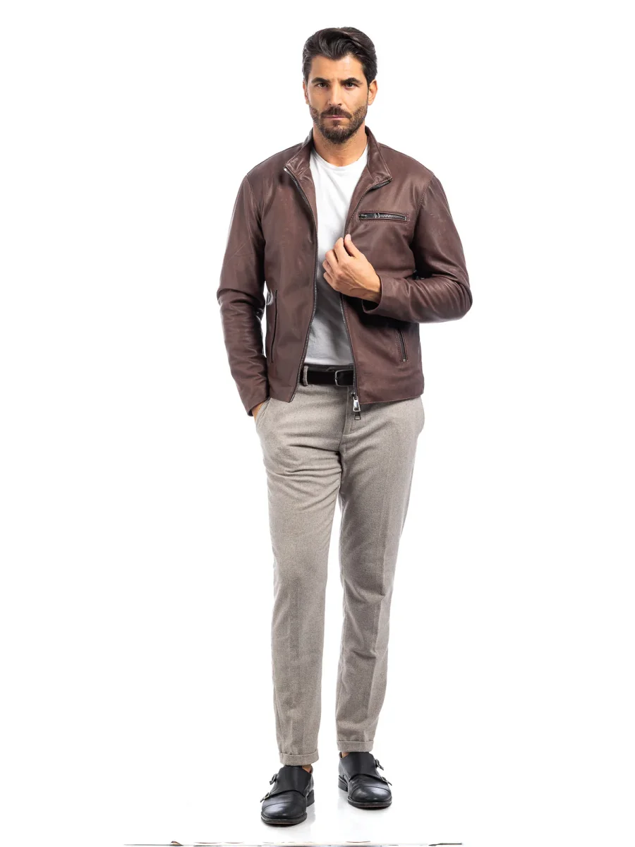Giacca in Pelle Vera – Modello: Biker adv in pelle marrone 100% Made in Italy