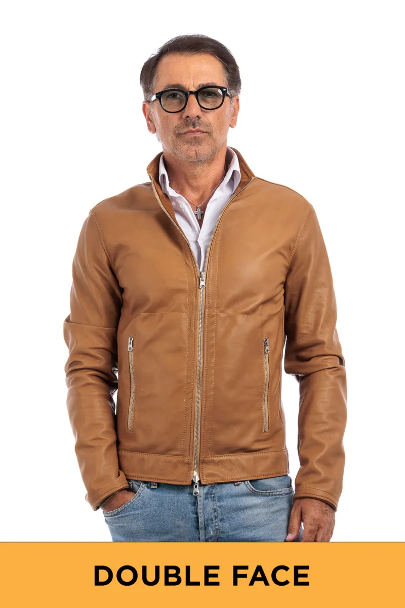 Giacca in Pelle Vera – Modello: biker double face idrorepellente 100% Made in Italy