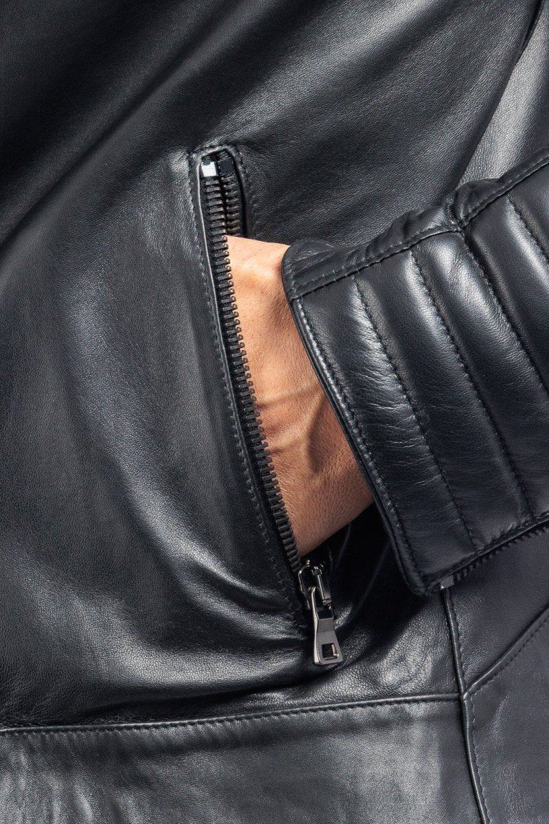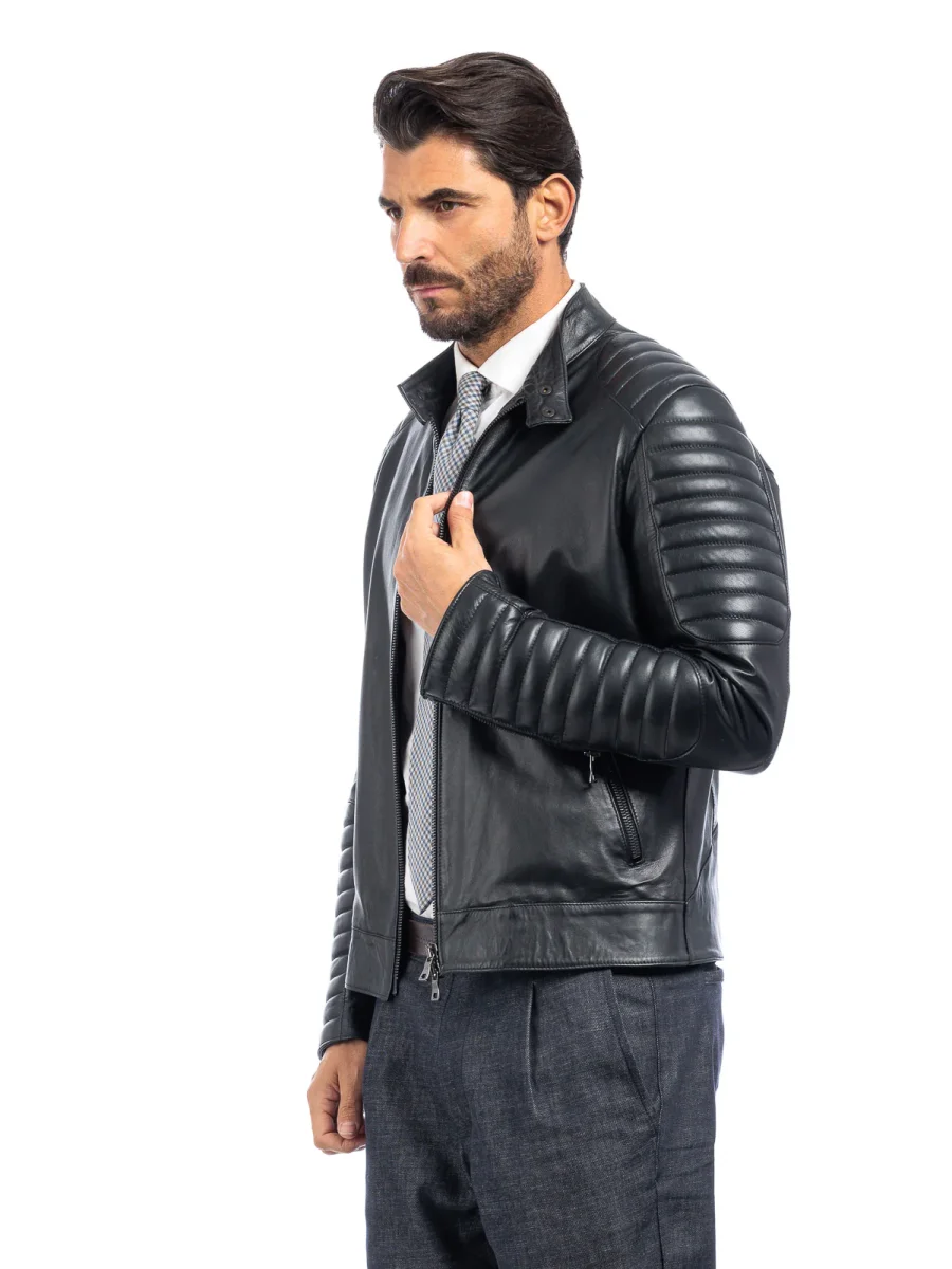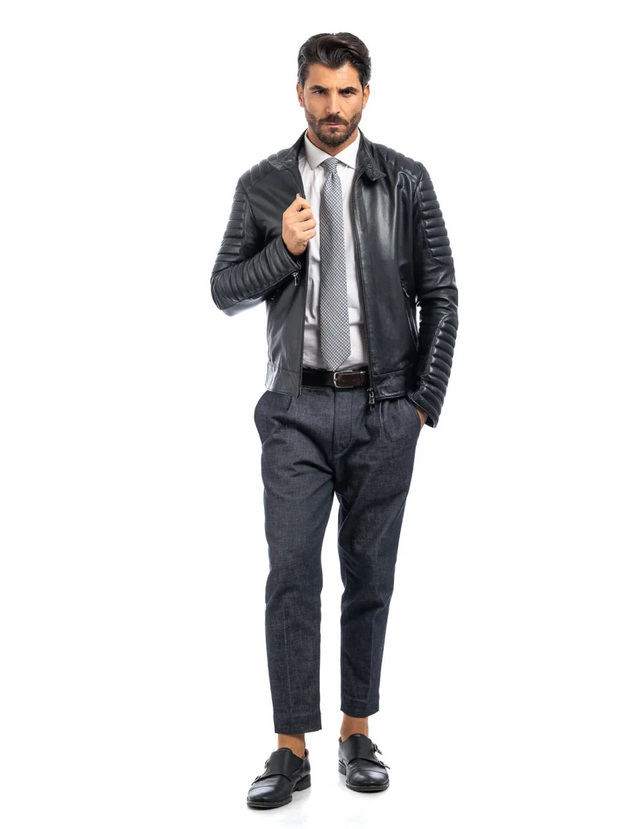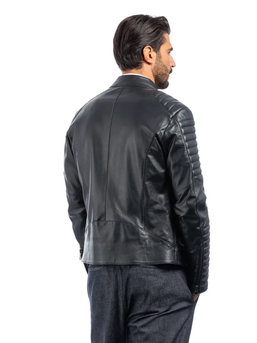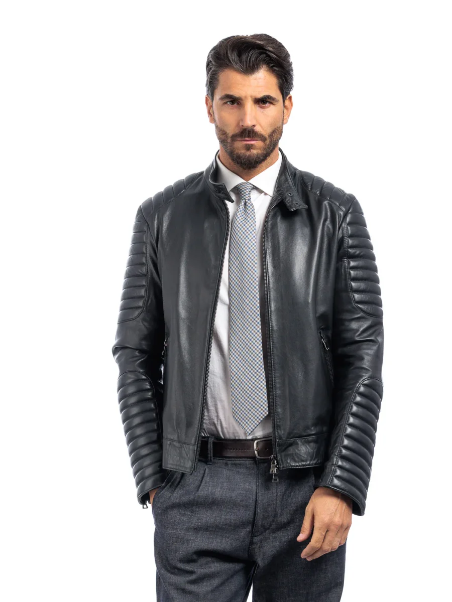Giacca biker in pelle uomo nero – linea OVER