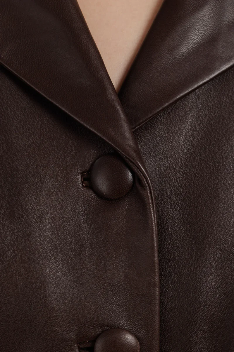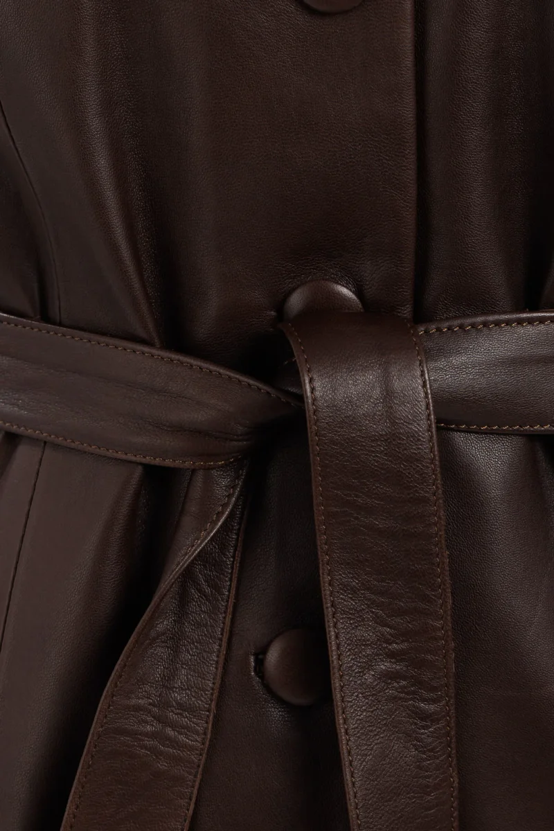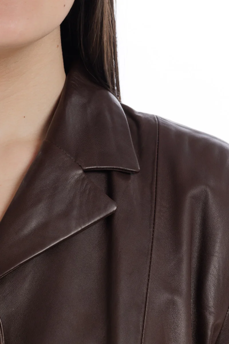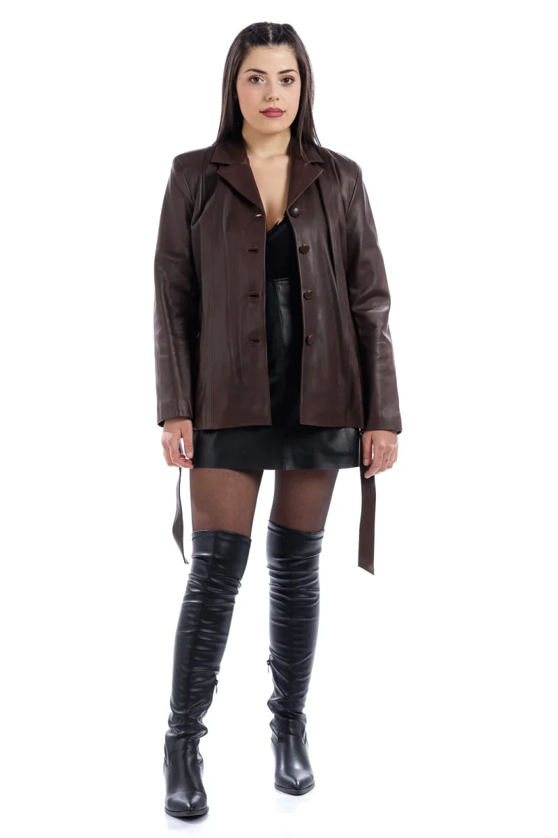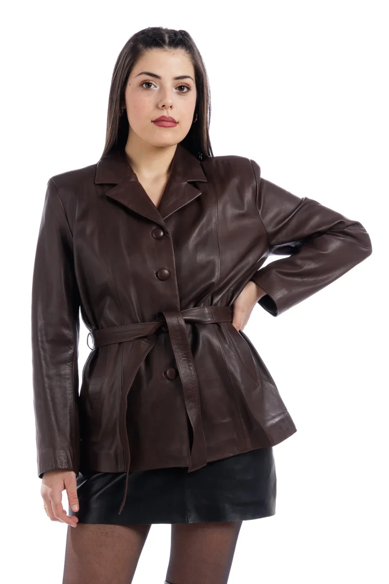 Giacca in Pelle Vera – Modello: Giacca con cintura in pelle testa di moro MARGOT 100% Made in Italy