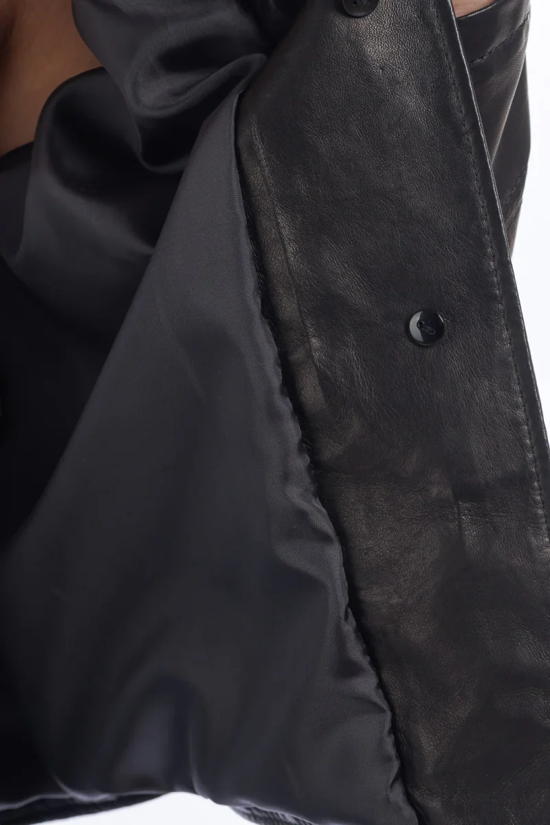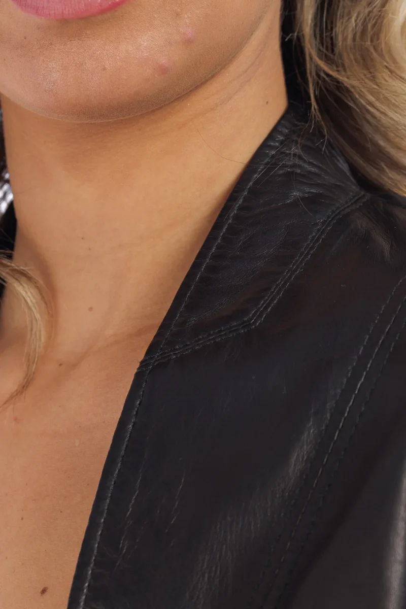 Giacca corpetto lungo in pelle donna nero