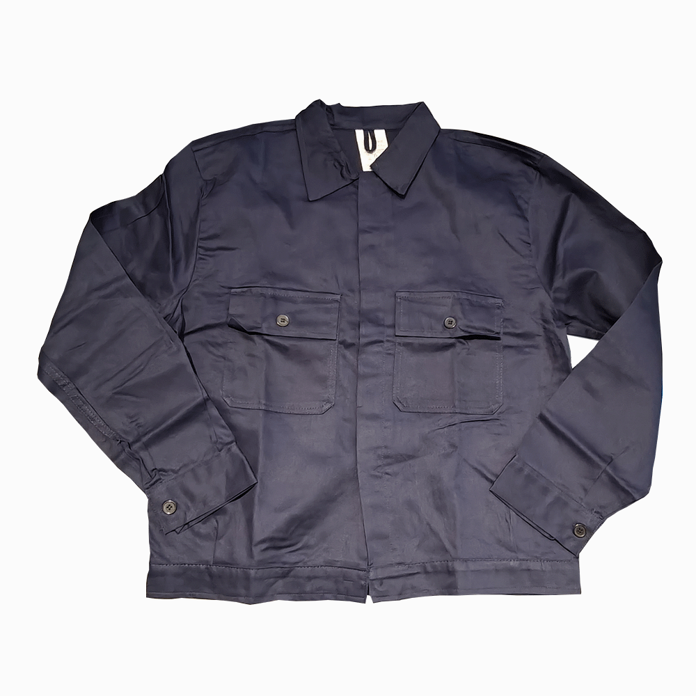 Tessuto: 100% cotone 260 gr/mq Ricamo parte alta della schiena colore rosso Chiusura con bottoni ricoperti Due tasche sul petto Due tasche laterali Bottone sul polsino