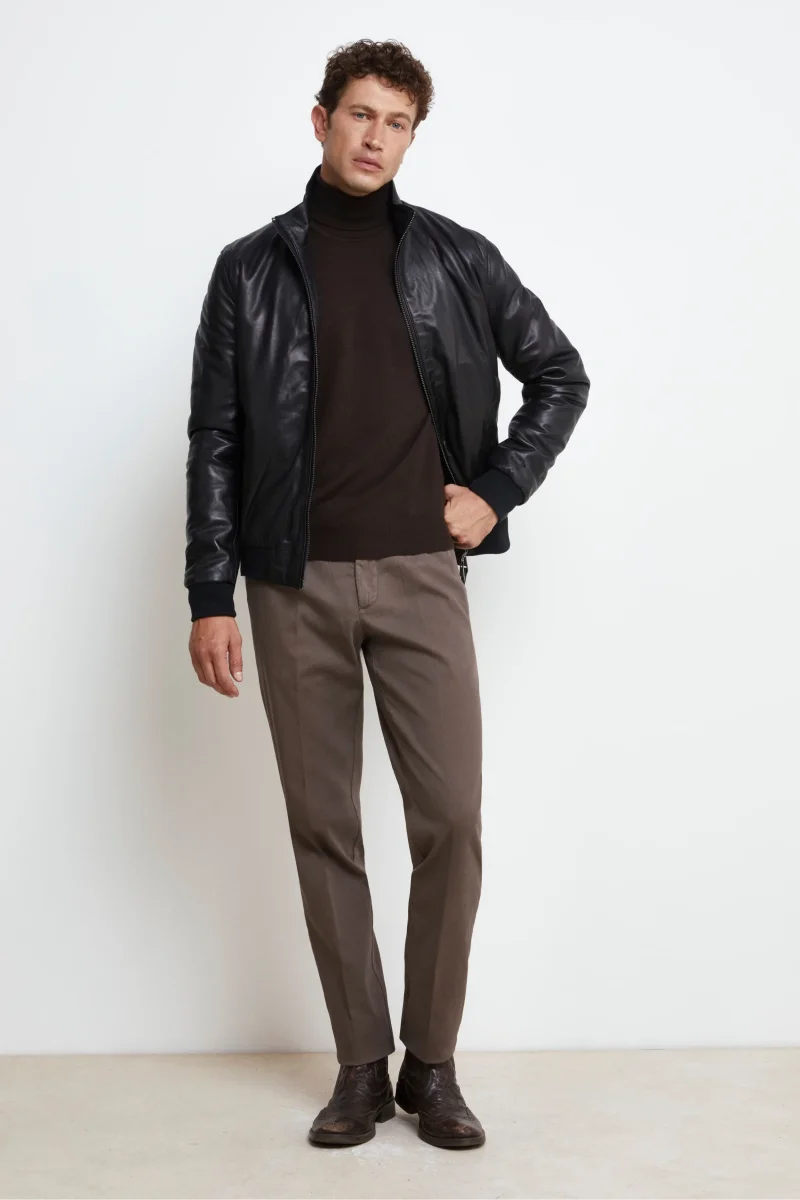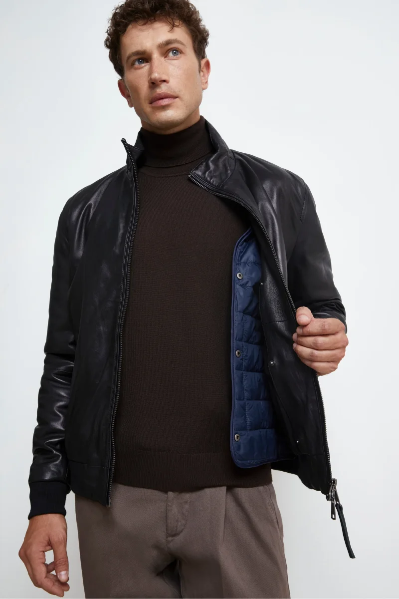 Il giubbotto nero di pelle con zip, parte della collezione IL Lanificio, รจ un capo che combina stile moderno e funzionalitร . Realizzato in pelle di alta qualitร , questo giubbotto da uomo รจ dotato di un pratico gilet staccabile, offrendo due capi in uno per una maggiore versatilitร , perfetto per adattarsi a diverse stagioni e occasioni. La chiusura anteriore con zip garantisce un look contemporaneo e dinamico, mentre il collo alto, i polsini e i bordi elasticizzati assicurano una vestibilitร regolare e un comfort elevato. Progettato per chi cerca un capo iconico che si distingue per lโeccellenza dei materiali e la cura dei dettagli, il giubbotto offre un equilibrio perfetto tra praticitร e stile. La pelle pregiata rende questo capo un simbolo della qualitร che contraddistingue la collezione IL Lanificio. Un must-have per il guardaroba maschile, ideale per chi desidera un giubbotto che unisca eleganza e funzionalitร in modo impeccabile. Il modello รจ alto 189 cm e indossa la taglia 50.