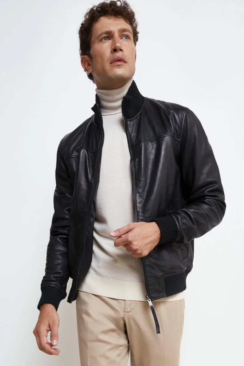 Giubbotto nero da uomo reversibile, realizzato in 100% pelle di alta qualitร , รจ un capo distintivo della collezione IL Lanificio, pensato per chi cerca uno stile raffinato e versatile. Caratterizzato da un collo alto elasticizzato, bordo inferiore e polsini elasticizzati, questo giubbotto offre una vestibilitร regolare che si adatta perfettamente a ogni occasione. Le tasche laterali e la chiusura frontale con zip aggiungono un tocco di praticitร , senza sacrificare lโeleganza del design. La reversibilitร del capo lo rende particolarmente funzionale, permettendo di variare look con semplicitร . Un pezzo essenziale per chi desidera combinare il lusso dei materiali pregiati con la massima versatilitร , il bomber di pelle reversibile รจ un esempio della qualitร e dello stile inconfondibile firmato IL Lanificio. Il modello รจ alto 189 cm e indossa la taglia 50.
