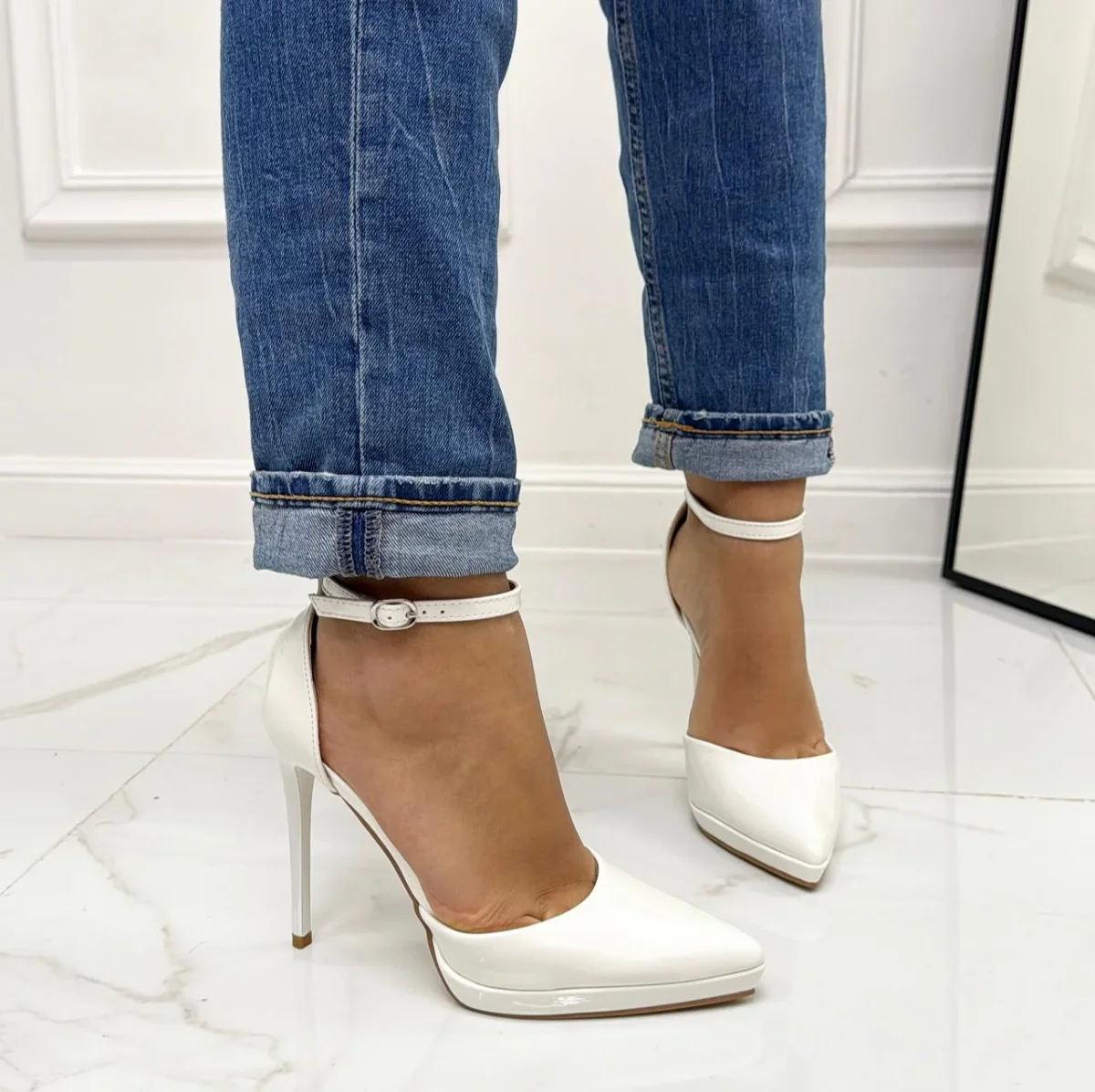 Cosa dire di questo stupendo decolleté? Indossato regala alla donna che l’utilizza, un effetto seducente e particolare, un binomio che ogni donna ricerca per essere sempre cool e alla moda nelle circostanze in cui decide di utilizzarle. Le sue peculiarità sono: la punta, il tacco alto 12 cm, tessuto in ecopelle lucido ed il cinturino alla caviglia regolabile. Può essere adatto per: feste, party, cocktail party, brunch e cerimonie. Hanno una calzata regolare.