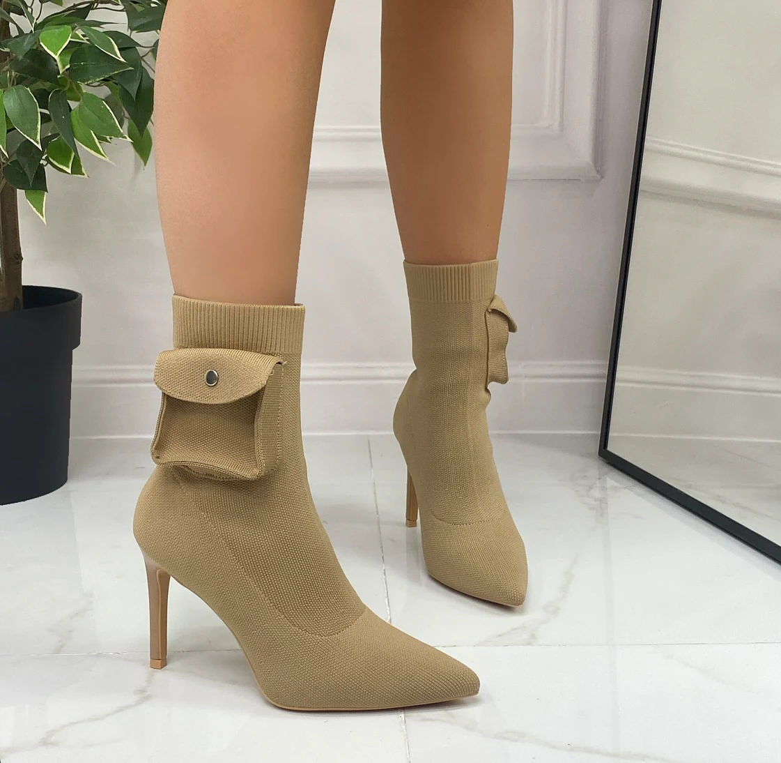 Gloria – Stivaletto Donna Punta Tacco Alto Khaki