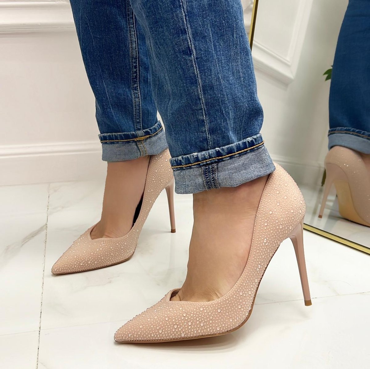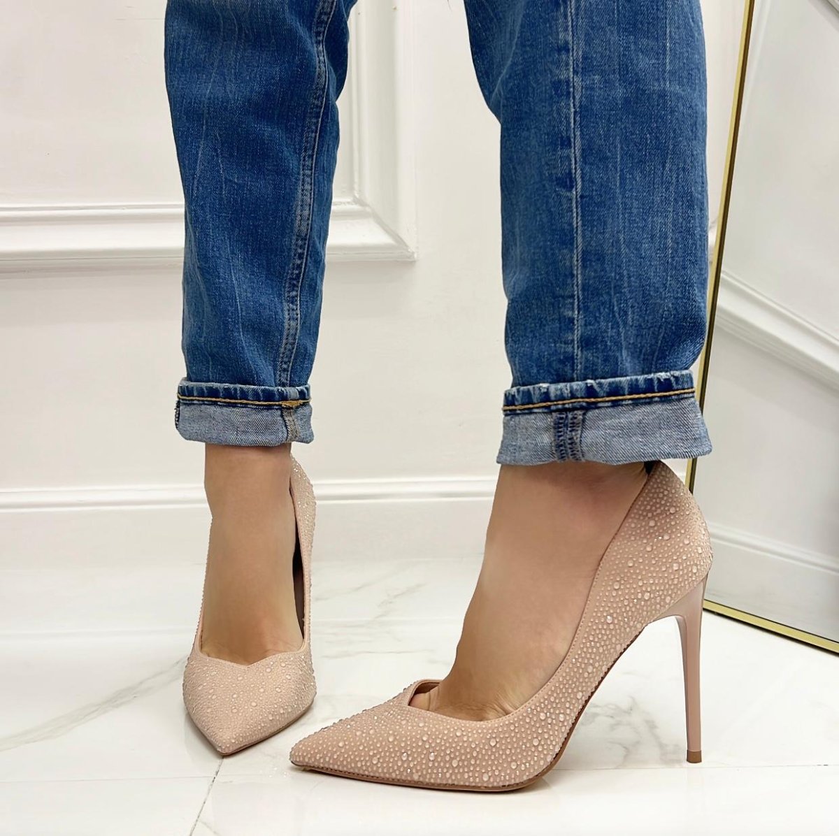 Gloss – Scarpe Décolleté Strass Elegante Tacco Nude