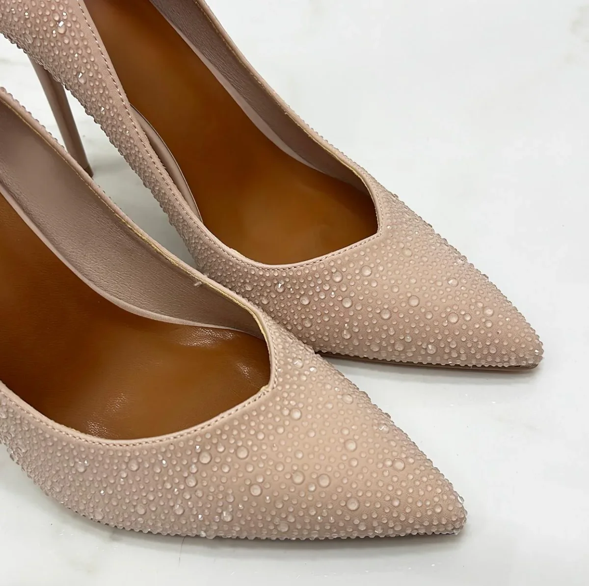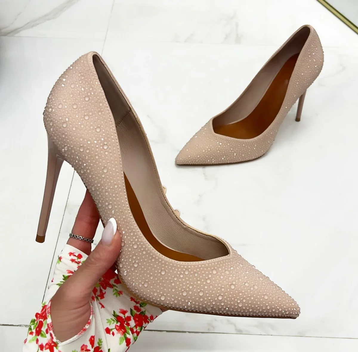 Questo decolleté dona al piede un effetto elegante e fine. Le sue caratteristiche sono: la punta ,strass posti su tutta la scarpa e tacco alto circa 11 cm. ;Non ti stancherai mai di portarlo , e sarai sempre all’ultima moda. Perfetto per abiti, vestiti, pantaloni e jeans. Può essere adatto per eventi come: feste, party, cocktail party, brunch e cerimonie. Ha una calzata regolare.
