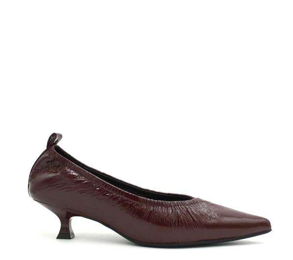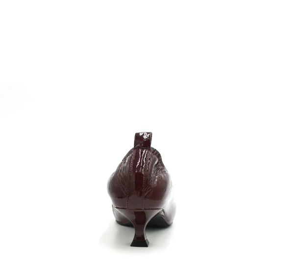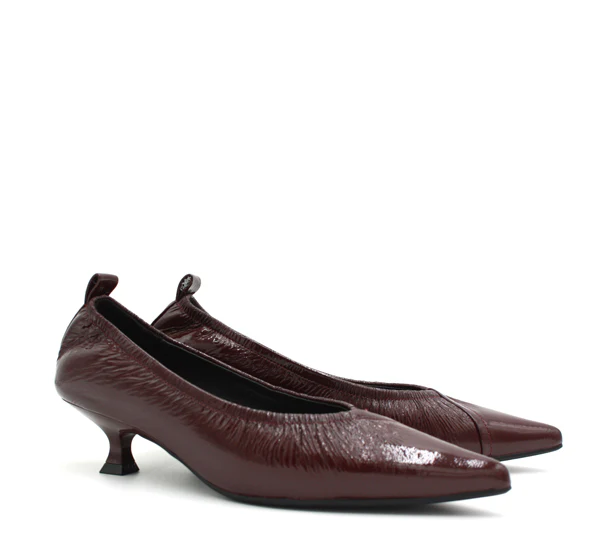 REF: GRETA-A1 Una decollete molto morbida. In vernice, arricciata. Guarda i dettagli in fitting, acquistare una taglia maggiore rispetto alla propria. Tomaia pelle. Forma a punta. Tacco dipinto (altezza 30 mm). Suola gomma FITTING: Questo modello ha una calzata piccola, si consiglia di acquistare una taglia maggiore rispetto alla propria GUIDA ALLE TAGLIE