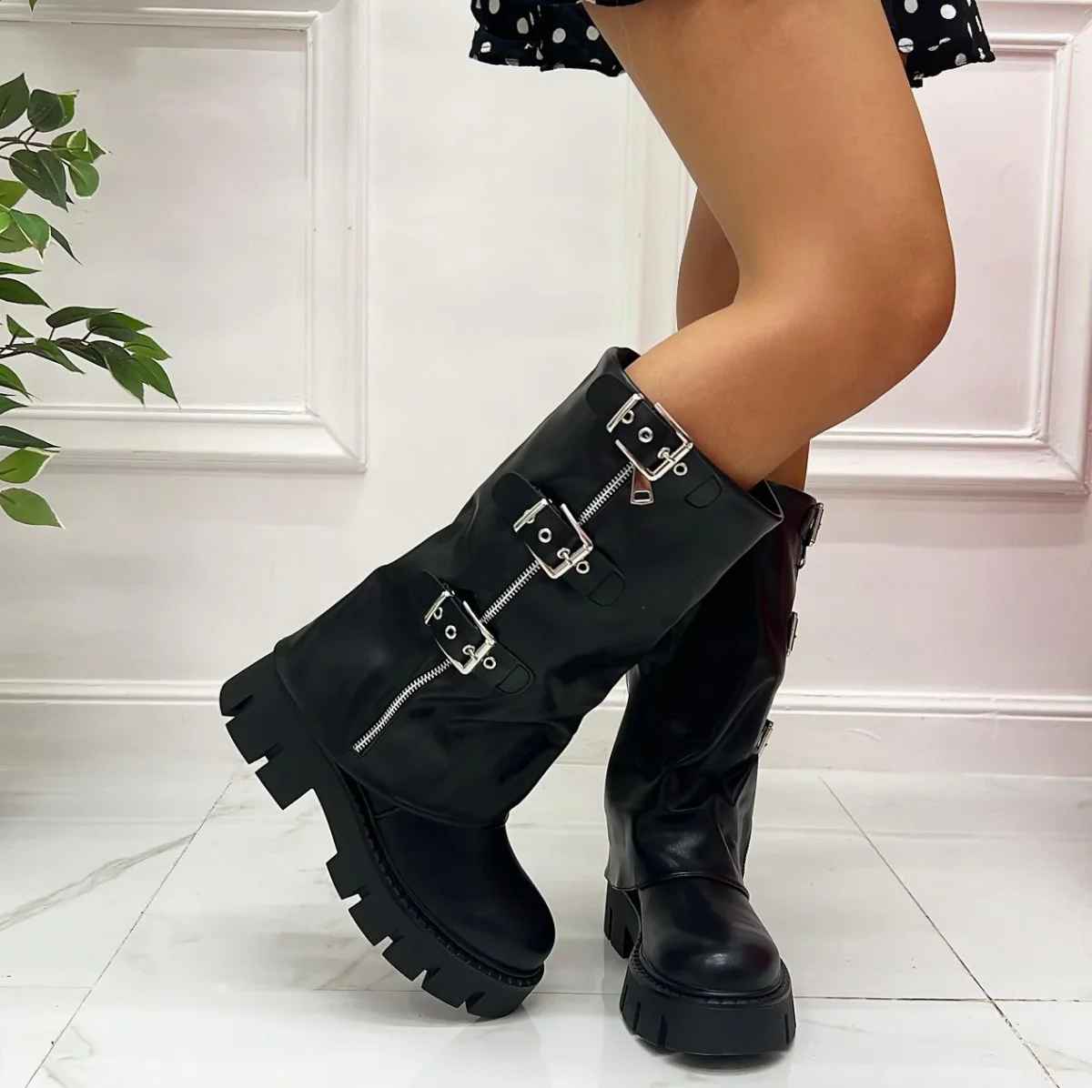 Hannah – Stivale Donna Anfibio Alto Fibbie Nero