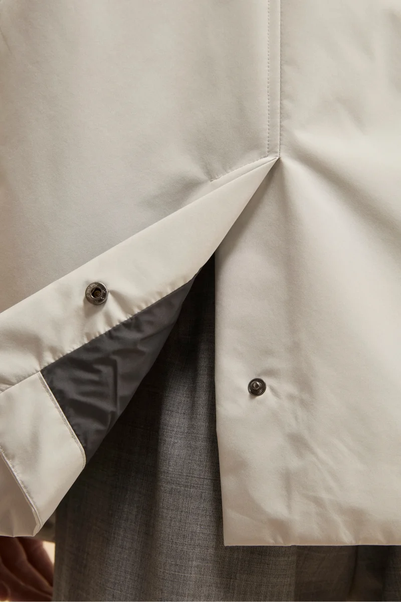 Questo impermeabile corto da uomo unisce funzionalitร e stile urban. Caratterizzato da una lunghezza ai fianchi, รจ dotato di chiusura frontale con bottoni, corpetto interno fisso con zip e colletto alto per una maggiore protezione. Lo spacchetto posteriore con bottoni a pressione garantisce libertร di movimento, mentre la vestibilitร regolare lo rende adatto a ogni silhouette. Completamente foderato allโinterno, รจ perfetto per la stagione primavera estate. Parte della collezione IL Lanificio, รจ ideale da abbinare a pantaloni chino, maglie leggere o camicie sartoriali per affrontare le mezze stagioni con stile e praticitร . Il modello รจ alto 189 cm e indossa la taglia 50.