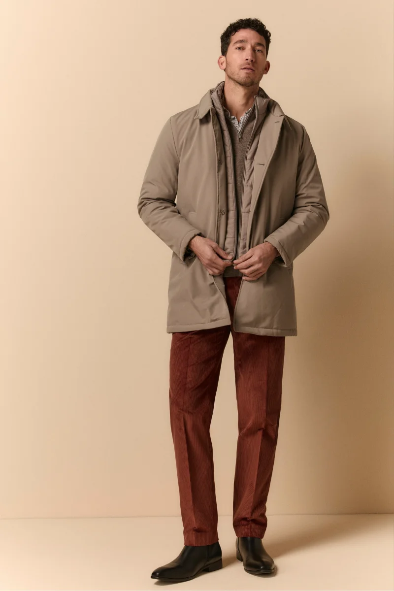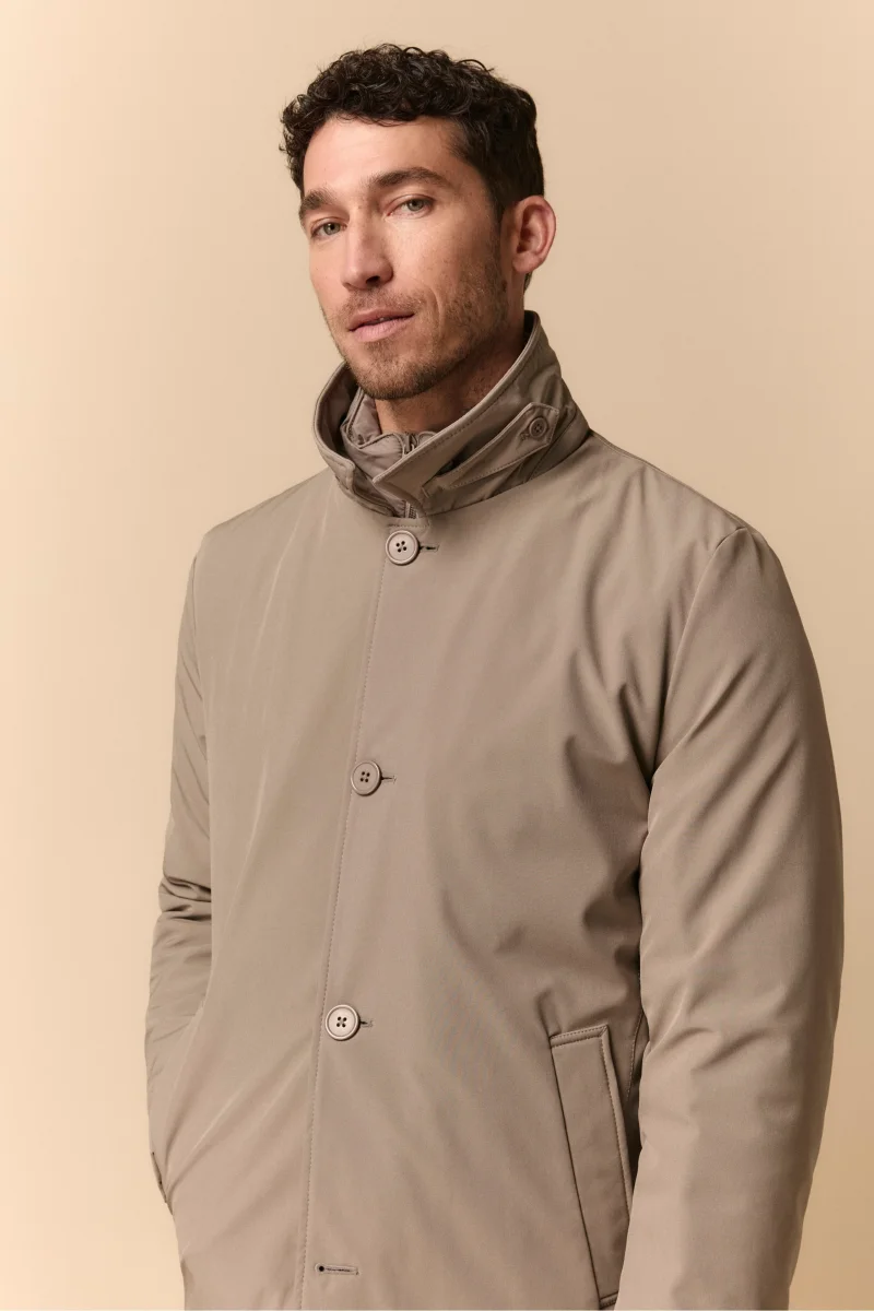 Elegante e funzionale, lโimpermeabile invernale da uomo con corpetto staccabile รจ perfetto per affrontare il freddo con stile. Dotato di imbottitura in ecopiuma, tasche con pattina laterali, doppia chiusura con zip e bottoni, e collo classico con laccetto regolabile, offre protezione e praticitร . La lunghezza ai fianchi e lo spacco posteriore garantiscono comfort e libertร di movimento. Un capo versatile, ideale per ogni stagione e occasione, che unisce sostenibilitร e raffinatezza. Il modello รจ alto 189 cm e indossa la taglia 50.