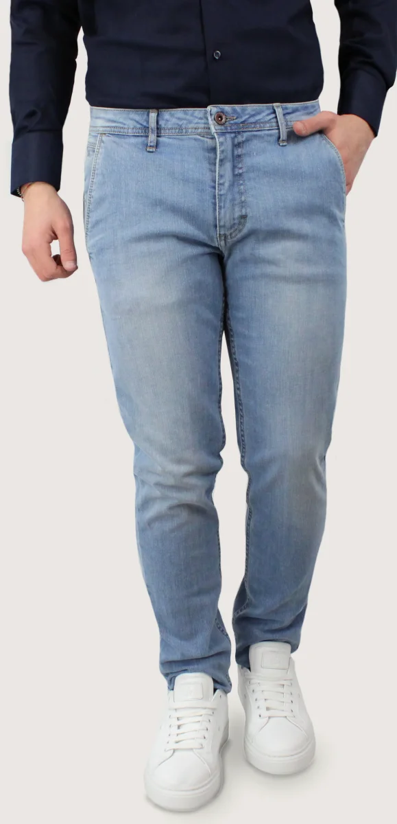 Esplora lo stile con i nostri jeans estivi con tasca americana. Realizzati con materiali di alta qualitร , questi jeans aggiungono un tocco di eleganza e classe al tuo guardaroba. Perfetti per un outfit casual ma sofisticato.