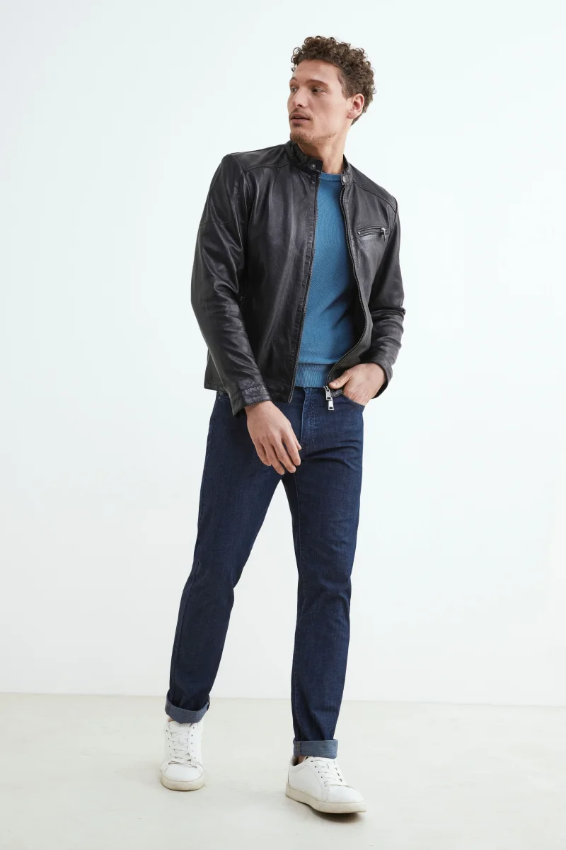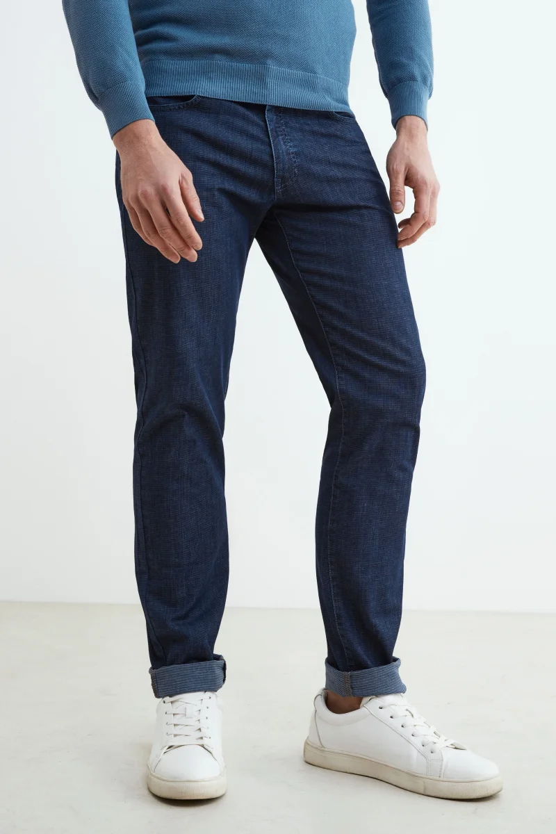 Jeans 5 tasche da uomo in cotone con chiusura a 1 bottone frontale e passanti per cintura. Realizzati con tessuti di alta qualitร e una vestibilitร aderente che abbraccia le tue curve in modo impeccabile, questi jeans sono un must-have per il tuo guardaroba. Il loro design offre un look moderno e sofisticato, perfetto per qualsiasi occasione, dallโufficio agli incontri informali con gli amici. Ideali abbinati ad un pullover in cotone Il Lanificio. Vestibilitร slim e made in Italy. Il modello รจ alto 1.86 cm e indossa la taglia 48.
