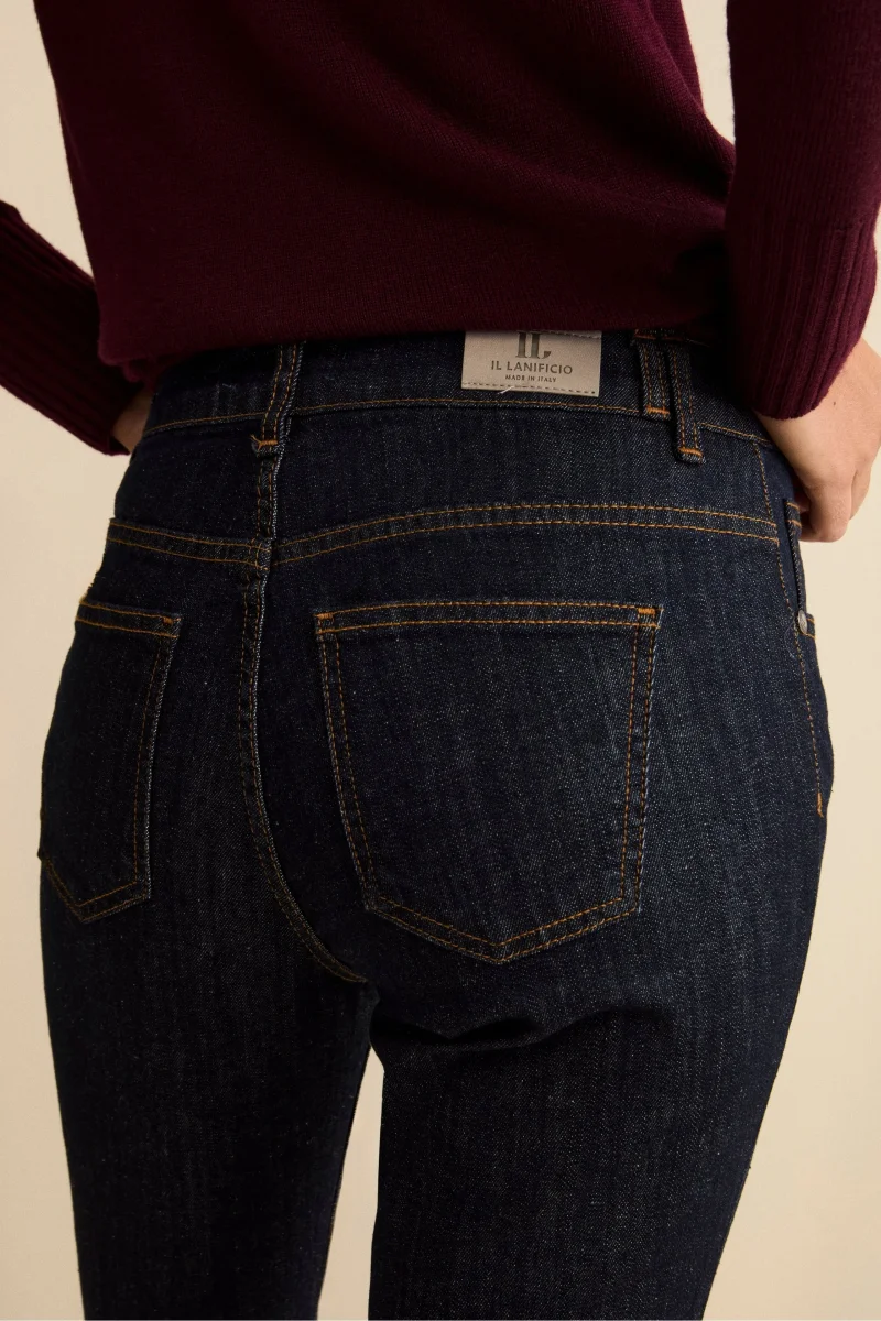 Essenziali, questi Jeans Mid-Flare Regular Fit in Cotone sono realizzati in misto cotone e presentano una linea femminile a zampa middy flare. Caratterizzati da una vestibilitร regolare, vestono leggermente piccoli e si consiglia quindi di scegliere una taglia in piรน. Il modello รจ definito da chiusura frontale con bottone, passanti per cintura, tasche frontali classiche e tasche posteriori applicate. Parte della collezione donna Il Lanificio e realizzati Made in Italy, questi jeans flare donna sono perfetti per creare look versatili: con una camicia in cotone e blazer per un outfit elegante da giorno, con una maglia dolcevita in cashmere e stivaletti per uno stile raffinato, oppure con una t-shirt e sneakers per un abbinamento casual. La modella รจ alta 178 cm e indossa la taglia 42.