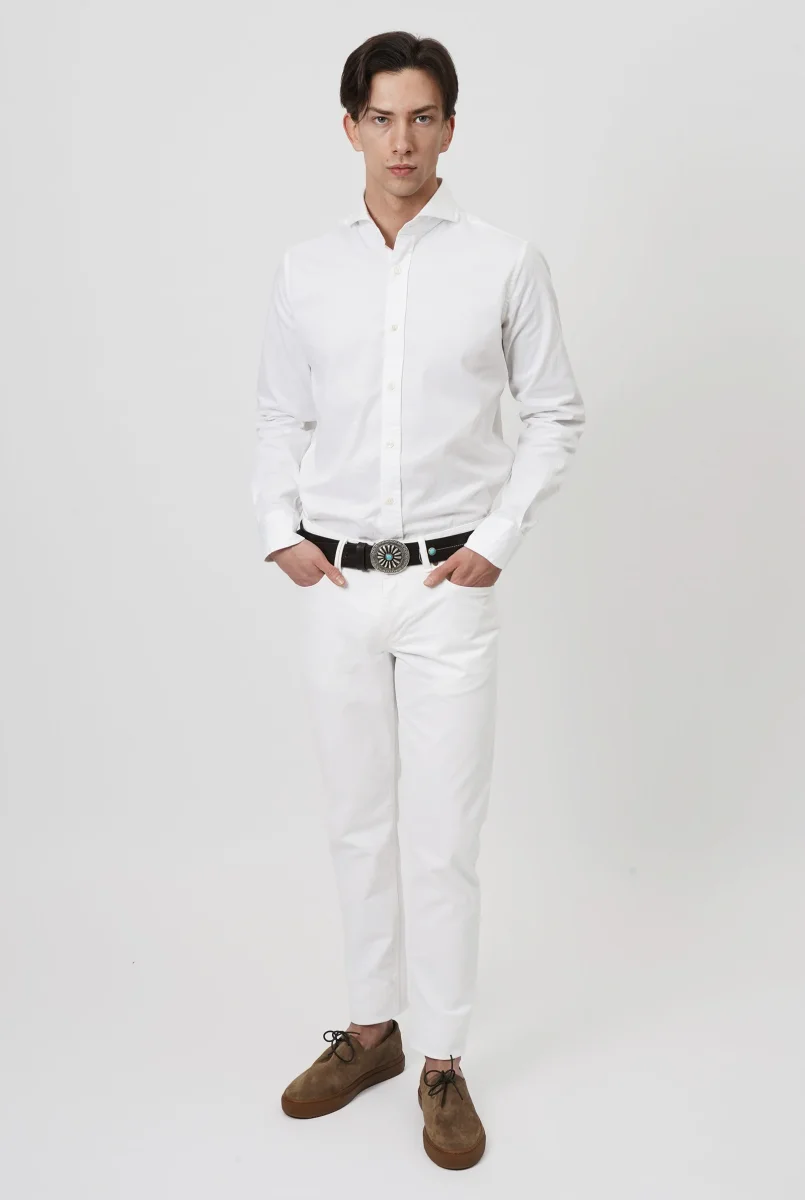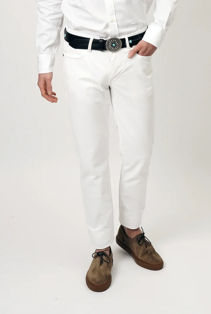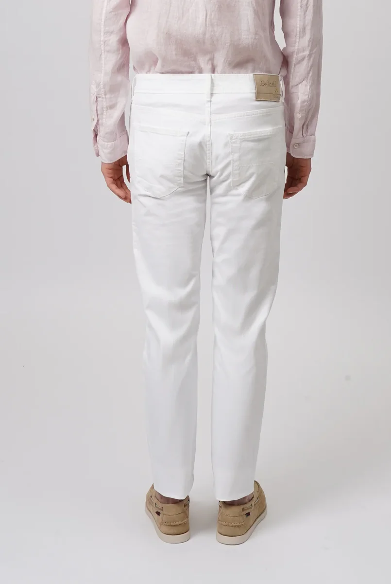 Jeans Re-Hash Slim Fit Bianco Il Jeans cinque tasche Sartoriale da Uomo, confortevole grazie al tessuto denim stretch. Dettagli Produzione: Made in Italy Tessuto: Denim Bianco Vestibilitร : Slim Fit