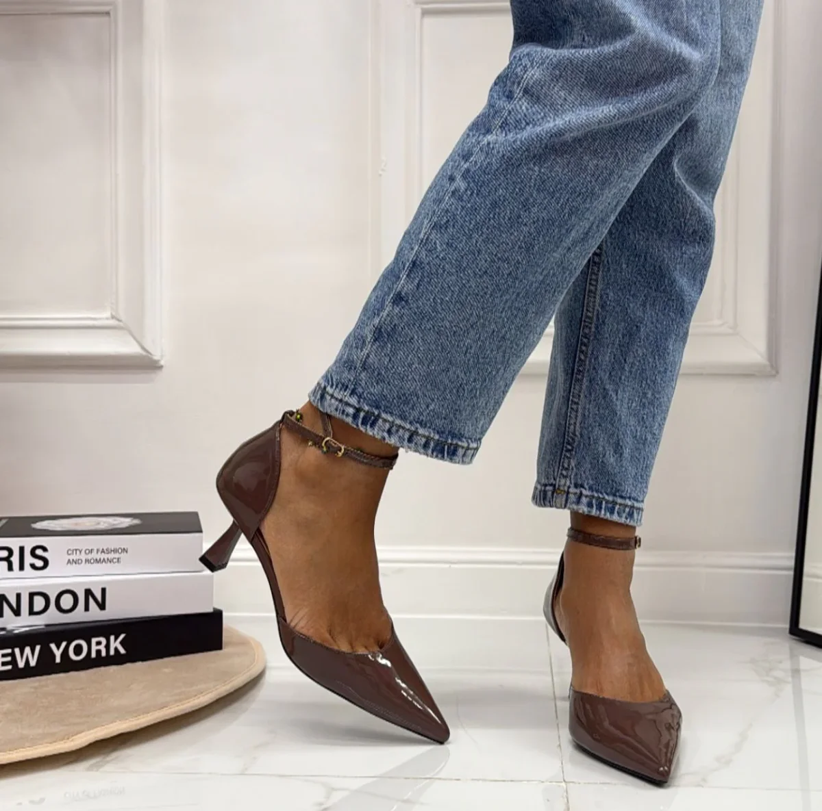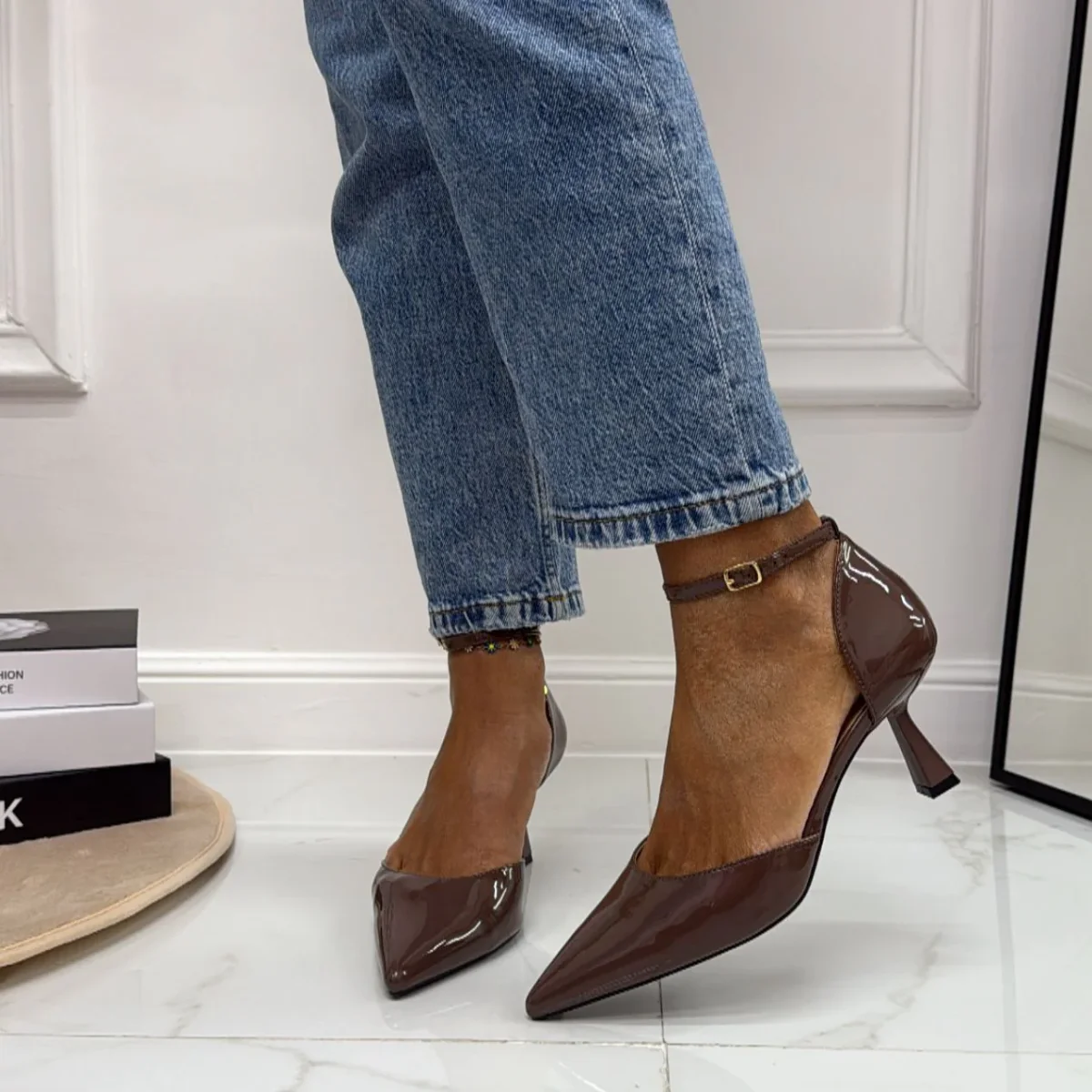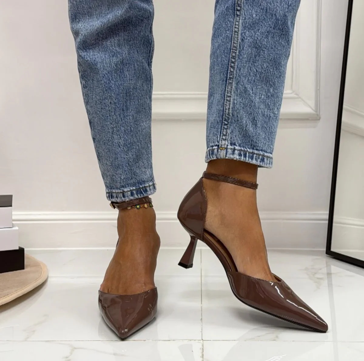 Karissa – Décolleté Donna Tacco A Spillo Punta Vernice Elegante Marrone