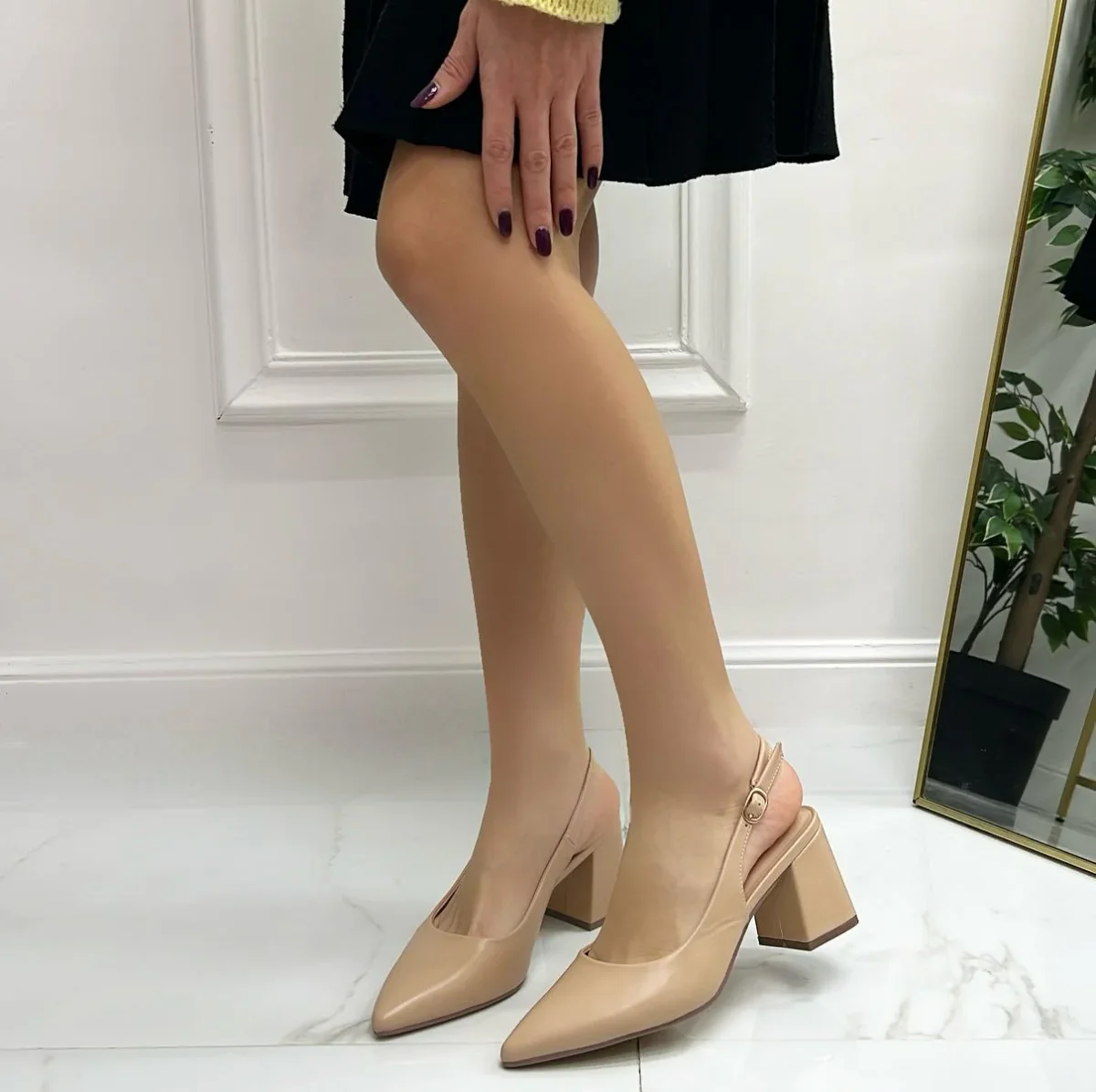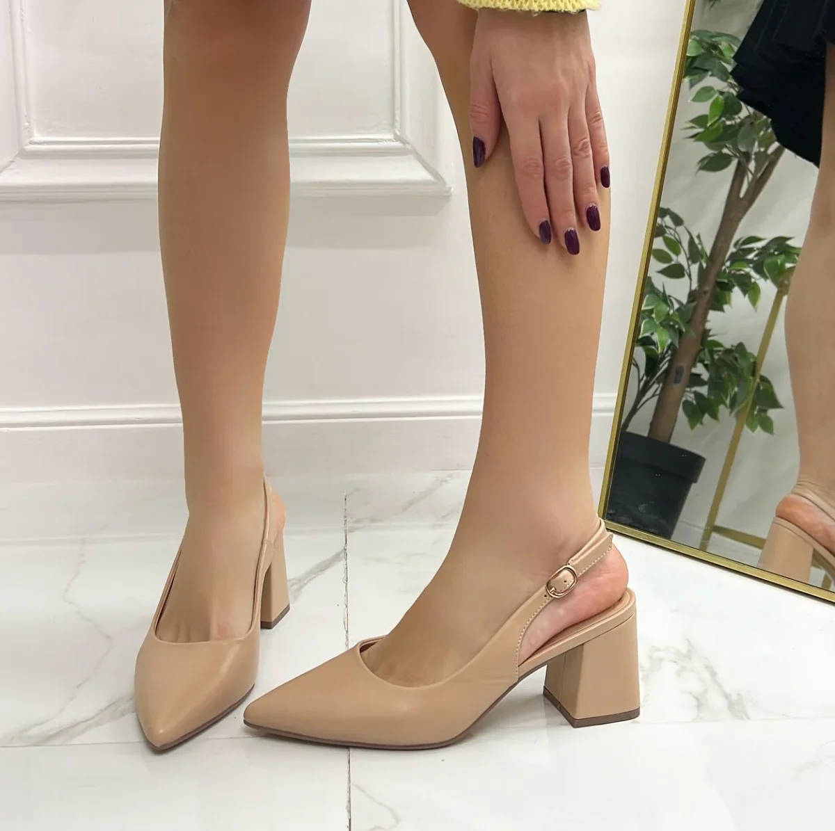 Katia – Decolleté Donna Punta Scarpa Tacco Quadrato Beige