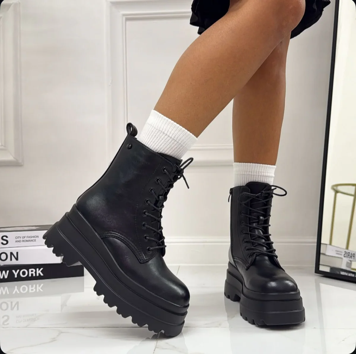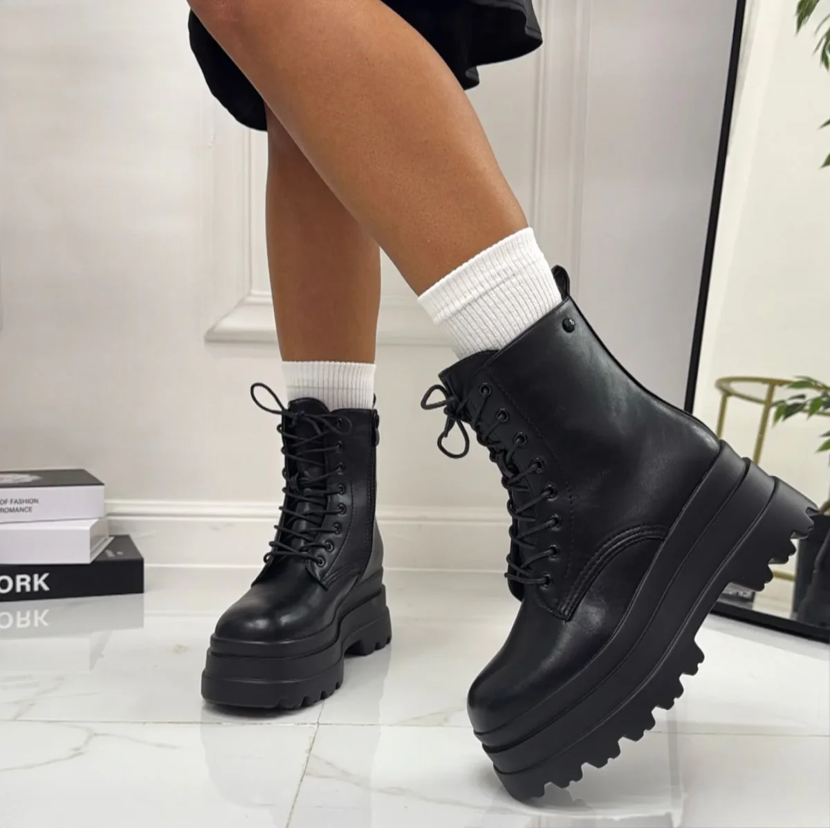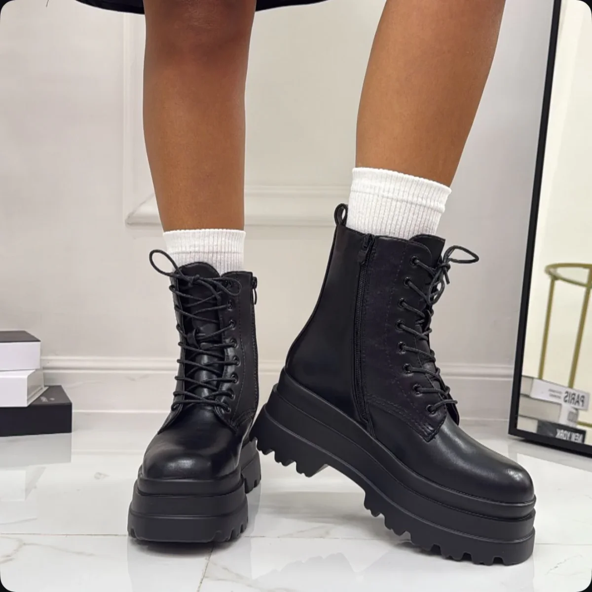 Aria – Stivaletti Bassi Anfibi Lacci Casual Comodo Nero