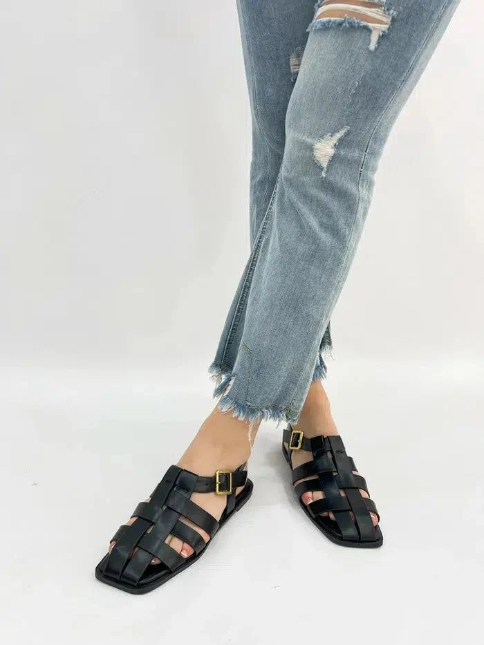 LOREDANA-Sandali bassi con fascette incrociate e fibbia