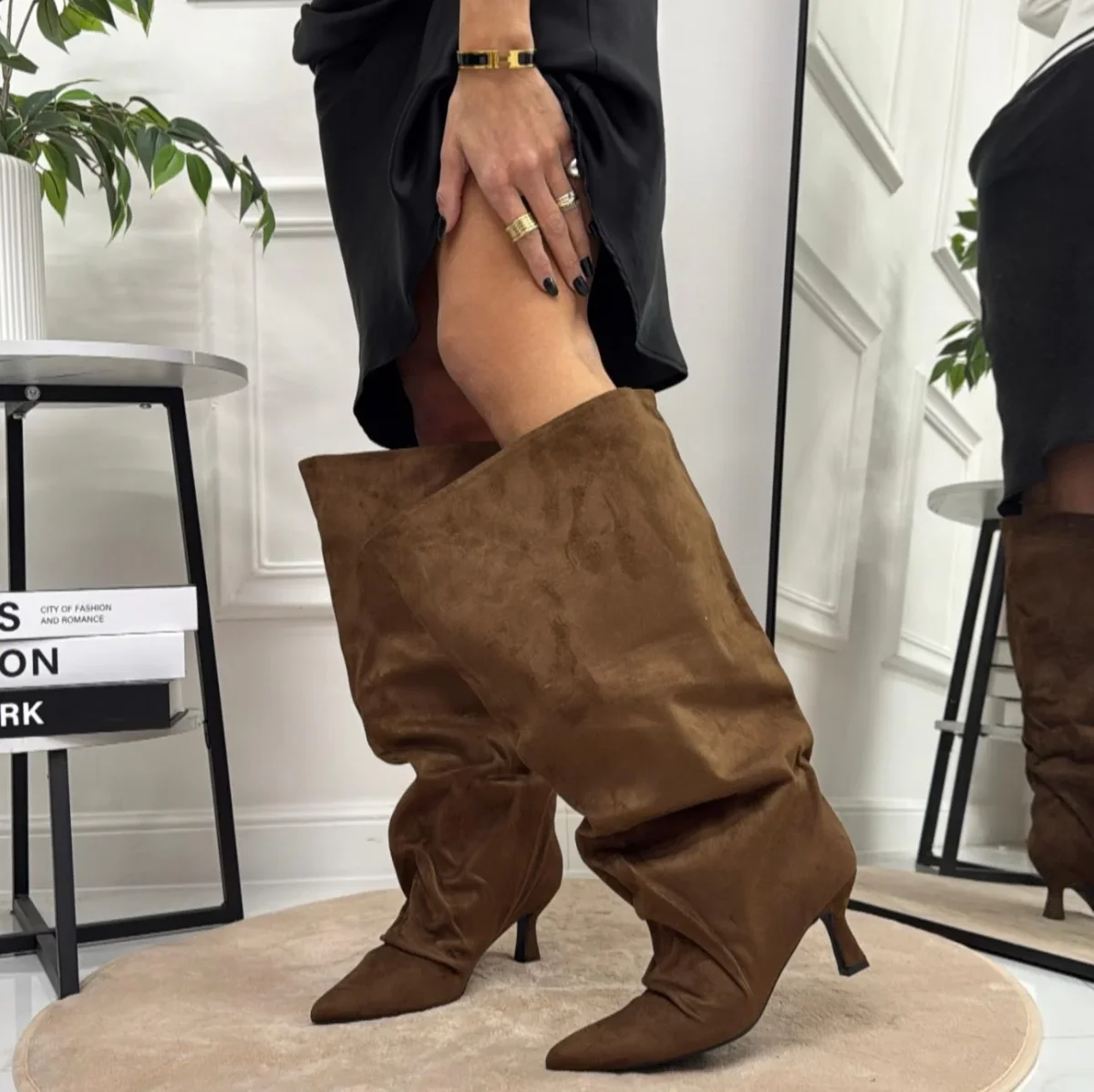 Loreley – Stivale Donna Alto Tacco Punta Casual Elegante Marrone