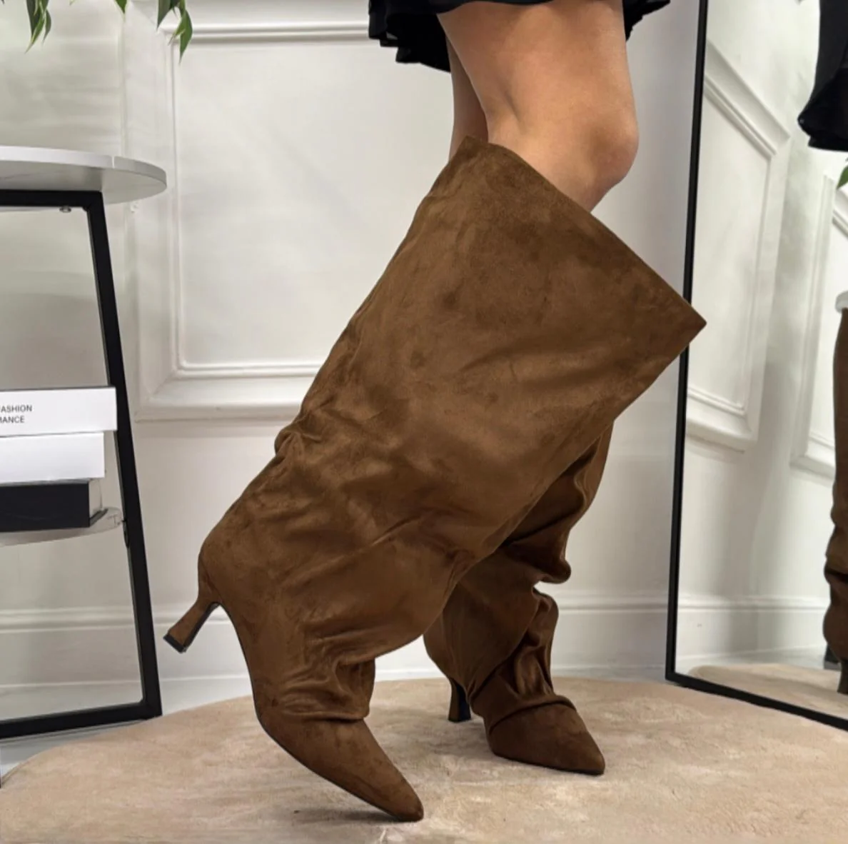 Questo stivale alto, รจ un accessorio davvero unico ed inimitabile nelle sue caratteristiche. Indossato si posa perfettamente sul piede e la gamba della donna che l’utilizza, regalandole comoditร e personalitร , due caratteristiche che ogni donna ricerca in un accessorio. Le sue peculiaritร sono: la punta, il tacco alto circa 6 cm, altezza gambale 40 cm, il tessuto eco pelle e hanno calzata regolare. Possono essere accostati capi come: gonne, shorts, vestitini ed ecc.