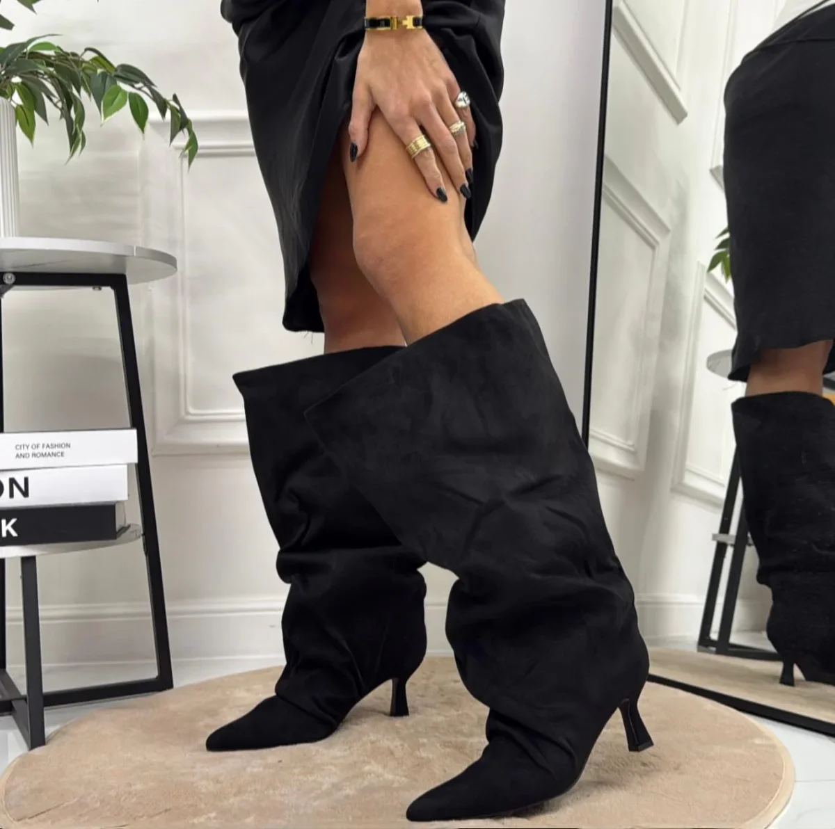 Bianca – Stivale Donna Alto Tacco Punta Casual Elegante Nero