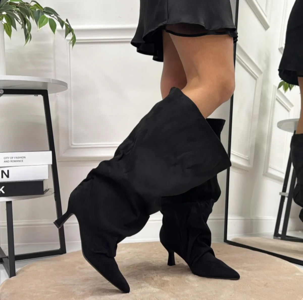 Loreley – Stivale Donna Alto Tacco Punta Casual Elegante Nero