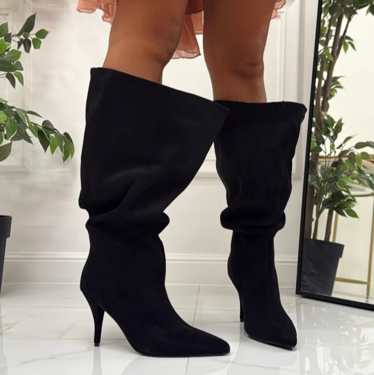 Questo stivale alto, รจ un accessorio davvero unico ed inimitabile nelle sue caratteristiche. Indossato si posa perfettamente sul piede e la gamba della donna che l’utilizza, regalandole comoditร e personalitร , due caratteristiche che ogni donna ricerca in un accessorio. Le sue peculiaritร sono: la punta, il tacco alto circa 6 cm, altezza gambale 40 cm, il tessuto eco camoscio e hanno calzata regolare. Possono essere accostati capi come: gonne, shorts, vestitini ed ecc.