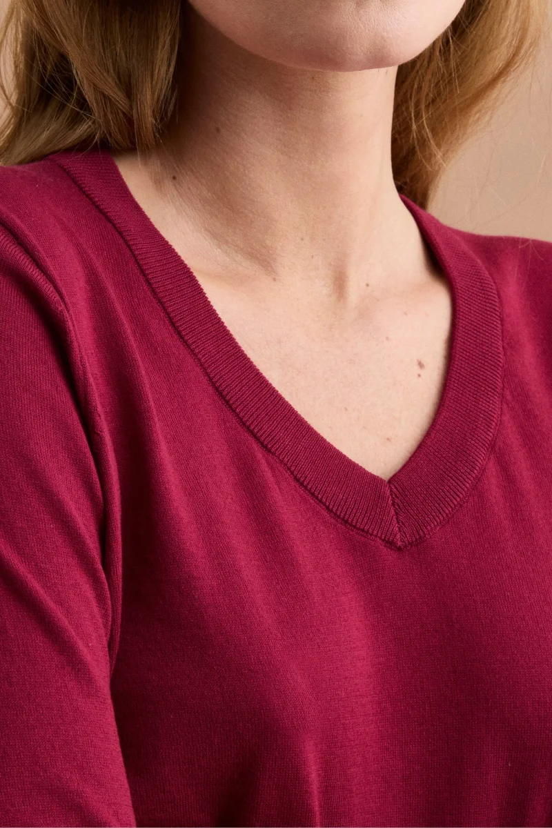 Maglia Boxy in Cotone con Scollo a V – BORDEAUX