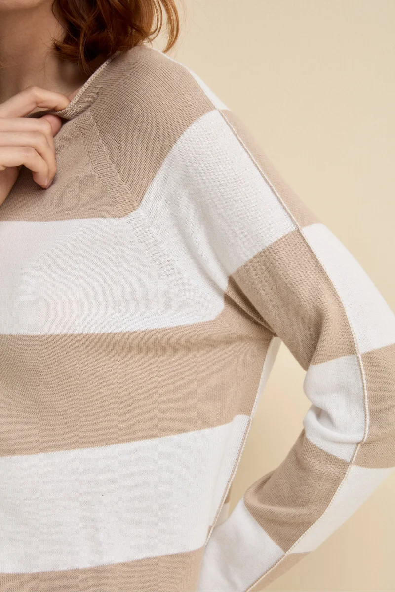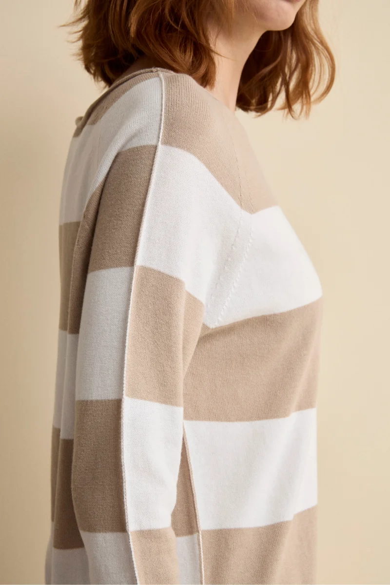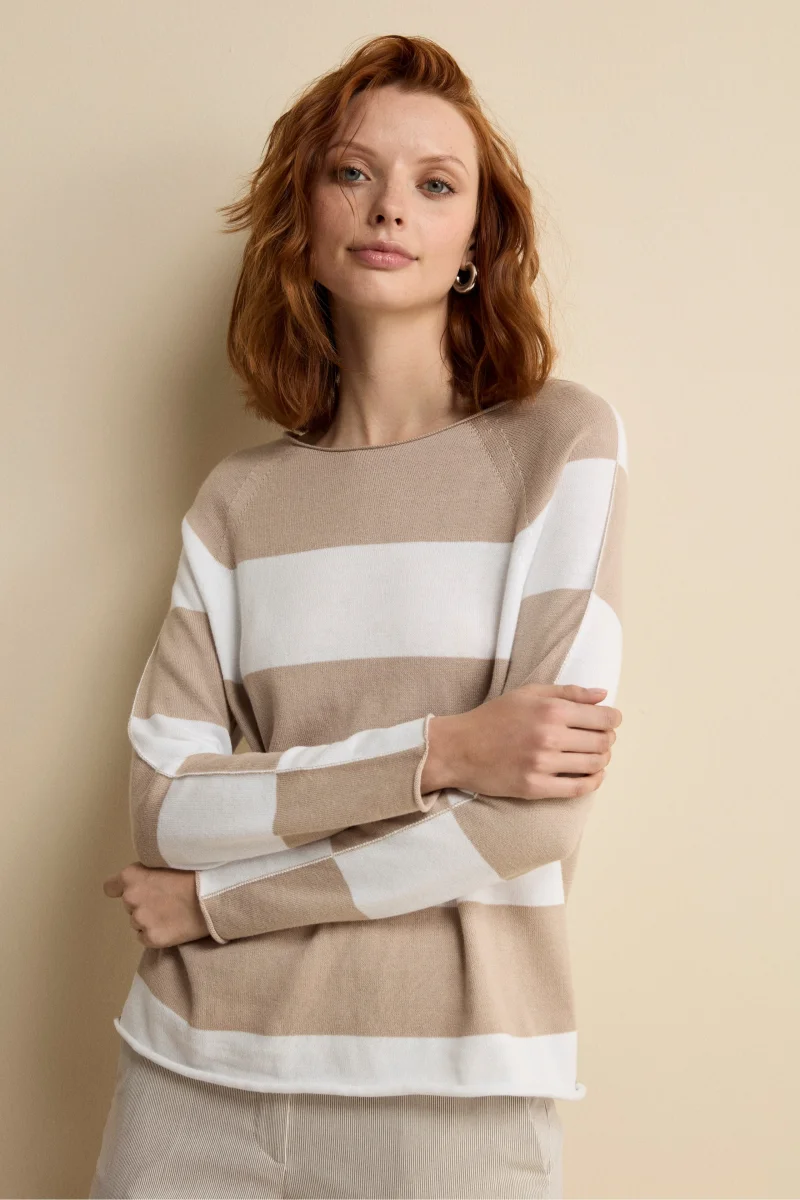 Maglia Girocollo a Righe in Cotone – BIANCO/BEIGE