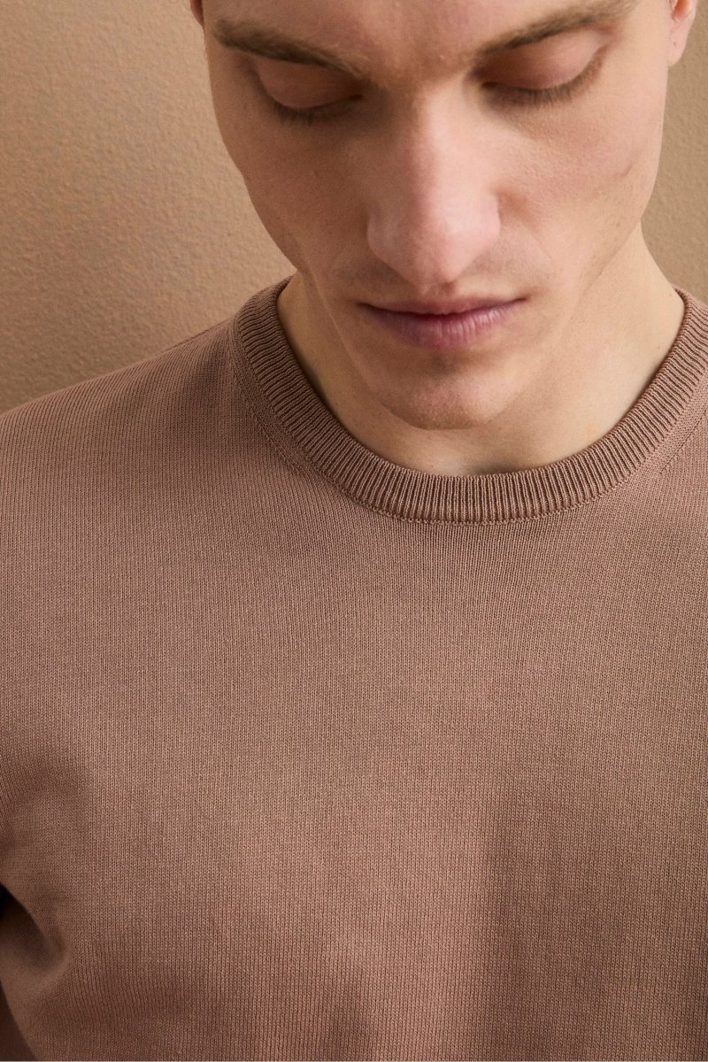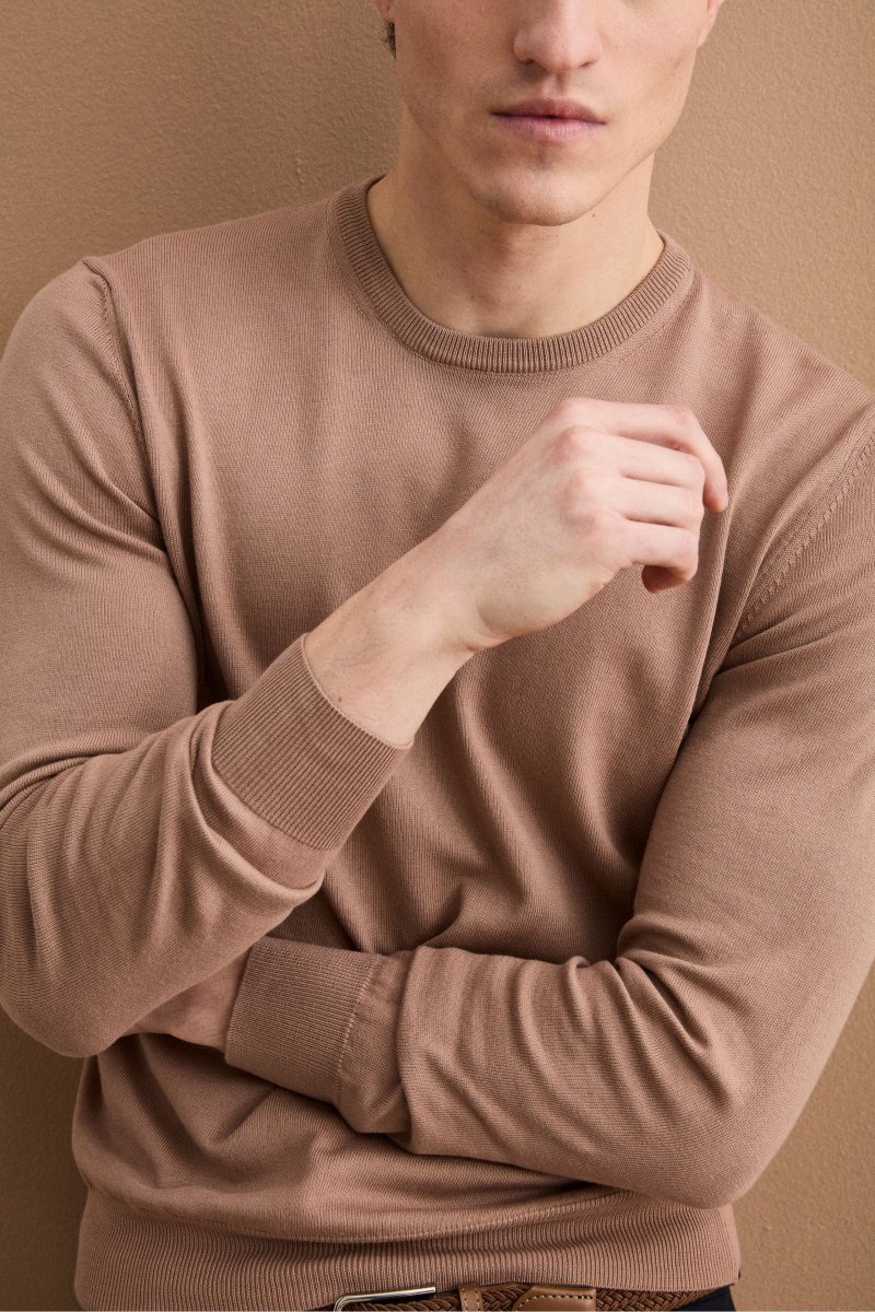 Maglia girocollo in cotone da uomo disponibile in unโampia gamma di colori pastello. Il capo basic essenziale per la primavera e nelle serate estive. Finezza 14. Made in Italy. Il modello รจ alto 189 cm indossa la taglia 50