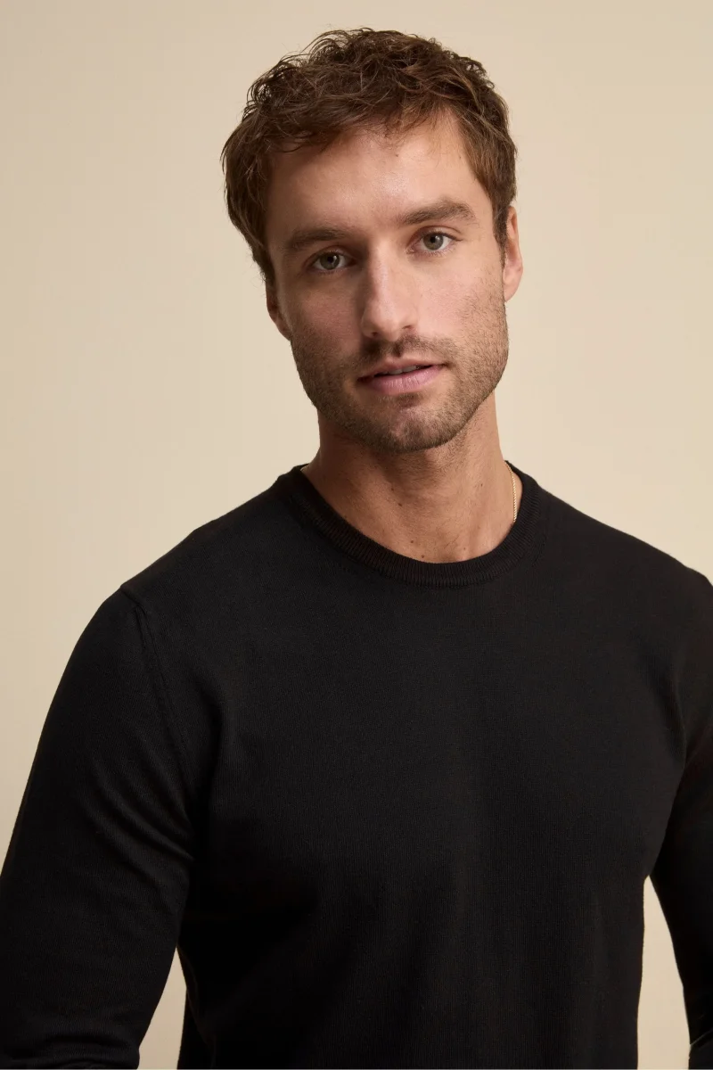 Maglia girocollo in cotone da uomo disponibile in unโampia gamma di colori pastello. Il capo basic essenziale per la primavera e nelle serate estive. Finezza 14. Made in Italy. Il modello รจ alto 189 cm indossa la taglia 50