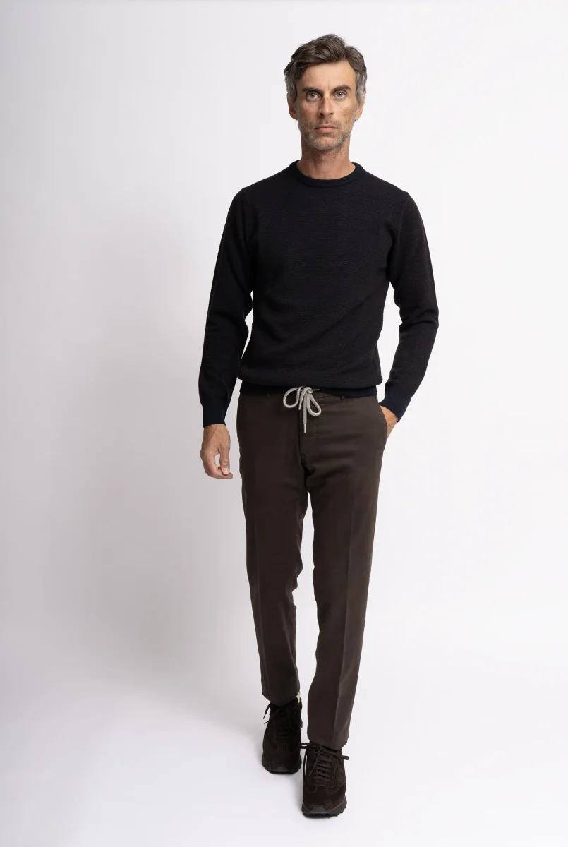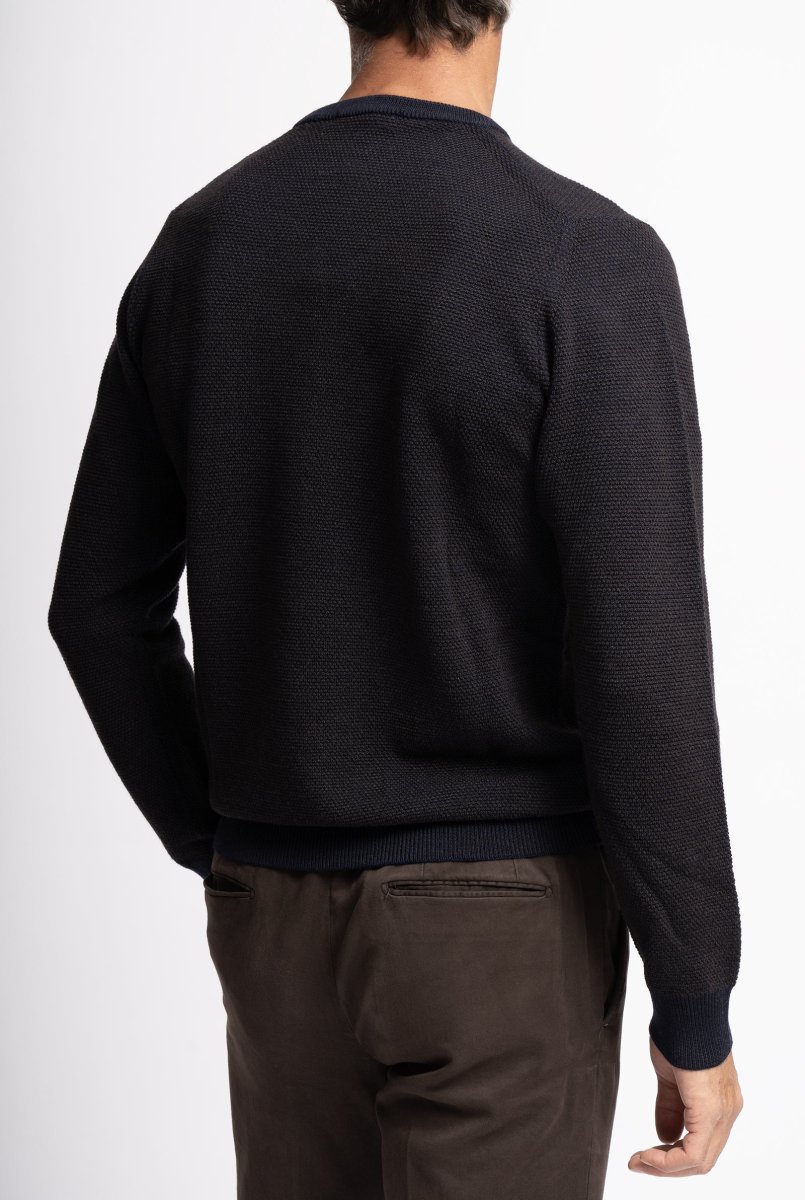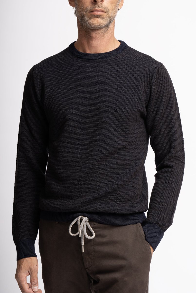 Girocollo 100% lana extra fine Zegna Baruffa, micro effetto color Navy e marrone scuro.